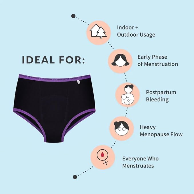 HomeBeautyBodyFeminine Hygienesuperbottoms MaxAbsorb® Period Underwear | Period Panty for Women | 8Hr Absorption | No Leaks, No Stains | High Waist, Full Coverage | Bamboo Fabric + Cotton - Pack of 2