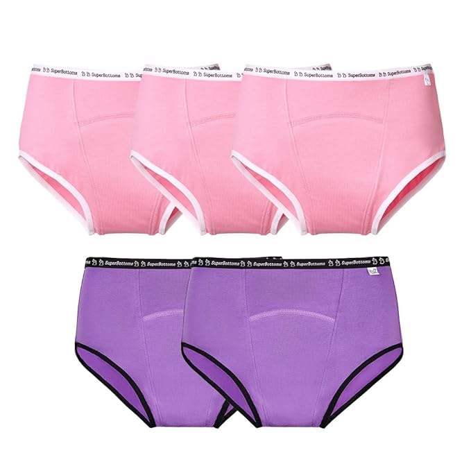 HomeBeautyBodyFeminine Hygienesuperbottoms MaxAbsorb® Period Underwear | Period Panty for Women | 8Hr Absorption | No Leaks, No Stains | High Waist, Full Coverage | Bamboo Fabric + Cotton(2 Lilac & 3 Pink,Size:XXL)