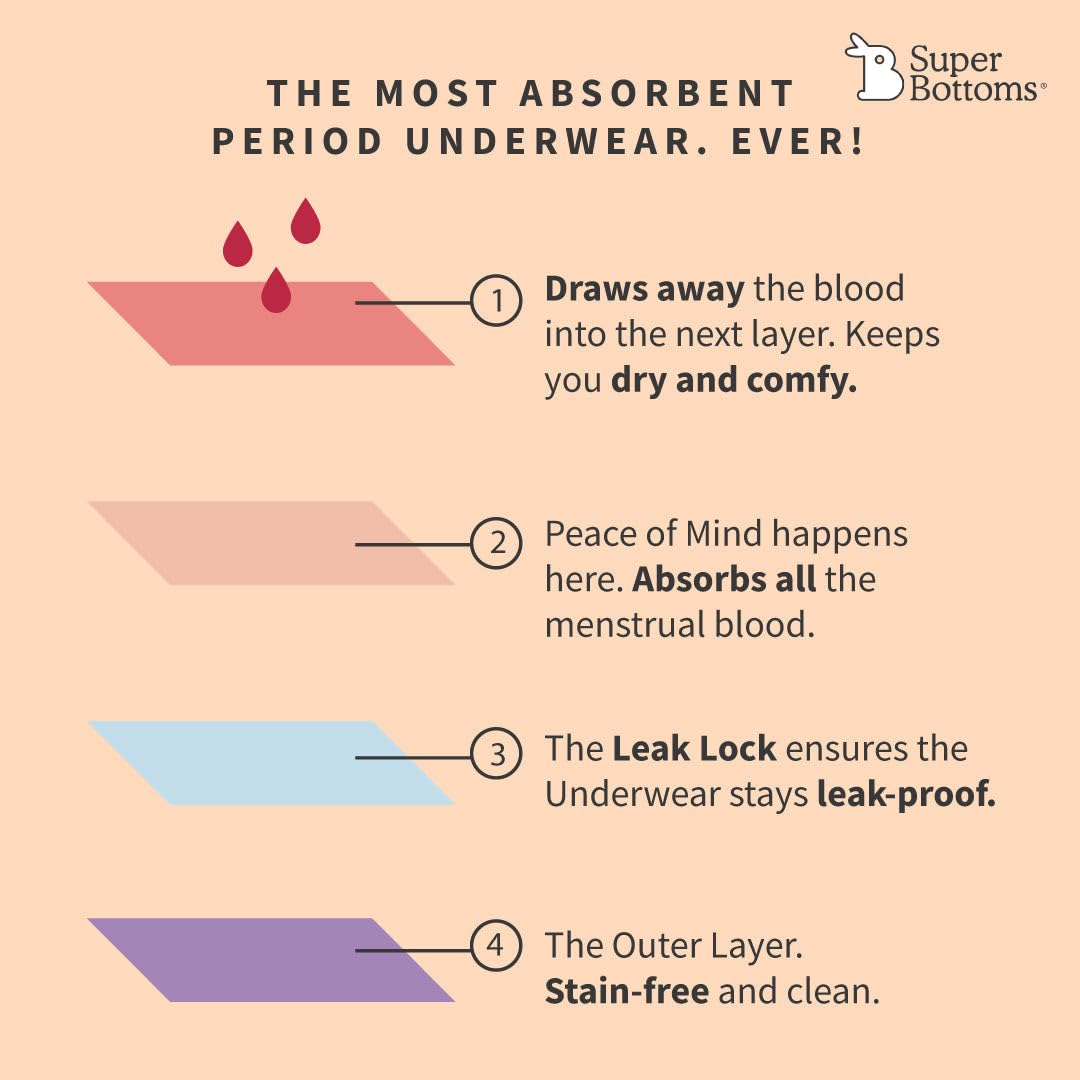 HomeBeautyBodyFeminine Hygienesuperbottoms MaxAbsorb Period Underwear | Period Panty for Women | 8Hr Absorption | No Leaks, No Stains | High Waist, Full Coverage | Bamboo Fabric + Cotton | Pack of X(3 Black,Size:M)