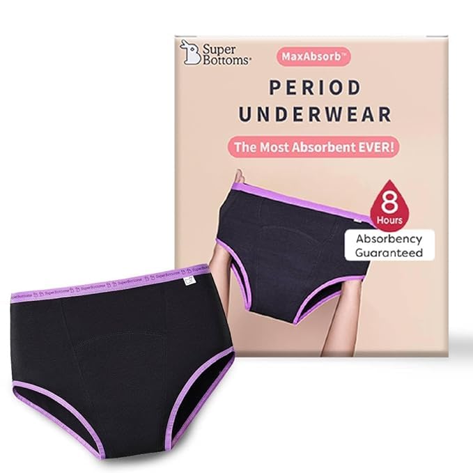 superbottoms Women's Maxabsorb Period Underwear | Period Panty Made With Bamboo Cotton | 8Hr Absorption | No Leaks, No Stains | High Waist | Reusable (Pack Of 1, Black, XL)