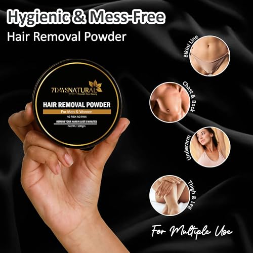 Whether you want to impress your partner/date or flaunt a clean look at the gym or pool 7 DAYS hair removal powder helps you up your grooming game. You can now remove unwanted body hair without the nicks cuts and prickly stubble that shaving often leaves behind in just 5 minutes! It is ideal for removing hair on the chest back shoulders arms underarms and legs.