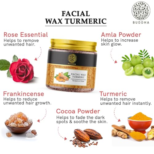 Buddha Natural Turmeric Facial Wax Powder (50 Gram, 1.7 oz) - Painless Natural Face Hair Removal Waxing Powder, Instant Quick Solution