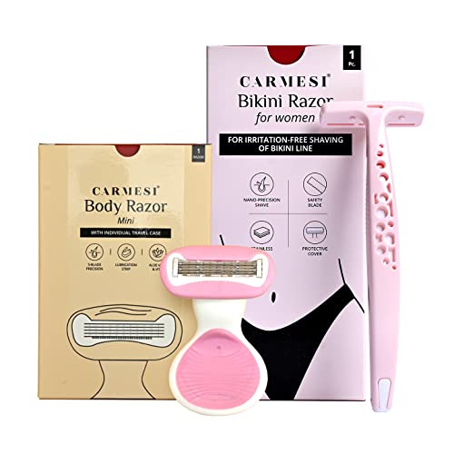 Get a full-body precision shave with this Razor Combo - no cuts no pain. The Bikini Razor blade has a safety comb which protects the delicate area down there against nicks & cuts. Further the handle makes for a firm grip thereby allowing you maximum control in the shower. The ergonomic handle of the Body Razor also facilitates a firm grip while the 2-way pivot makes for an easy glide along curves & contours. Further the Body Razor is enriched with an Aloe Vera & Vitamin E lubrication strip which makes your skin super soft. The best part is that this razor easily fits in your pocket purse or handbag so you can shave anywhere on the go.