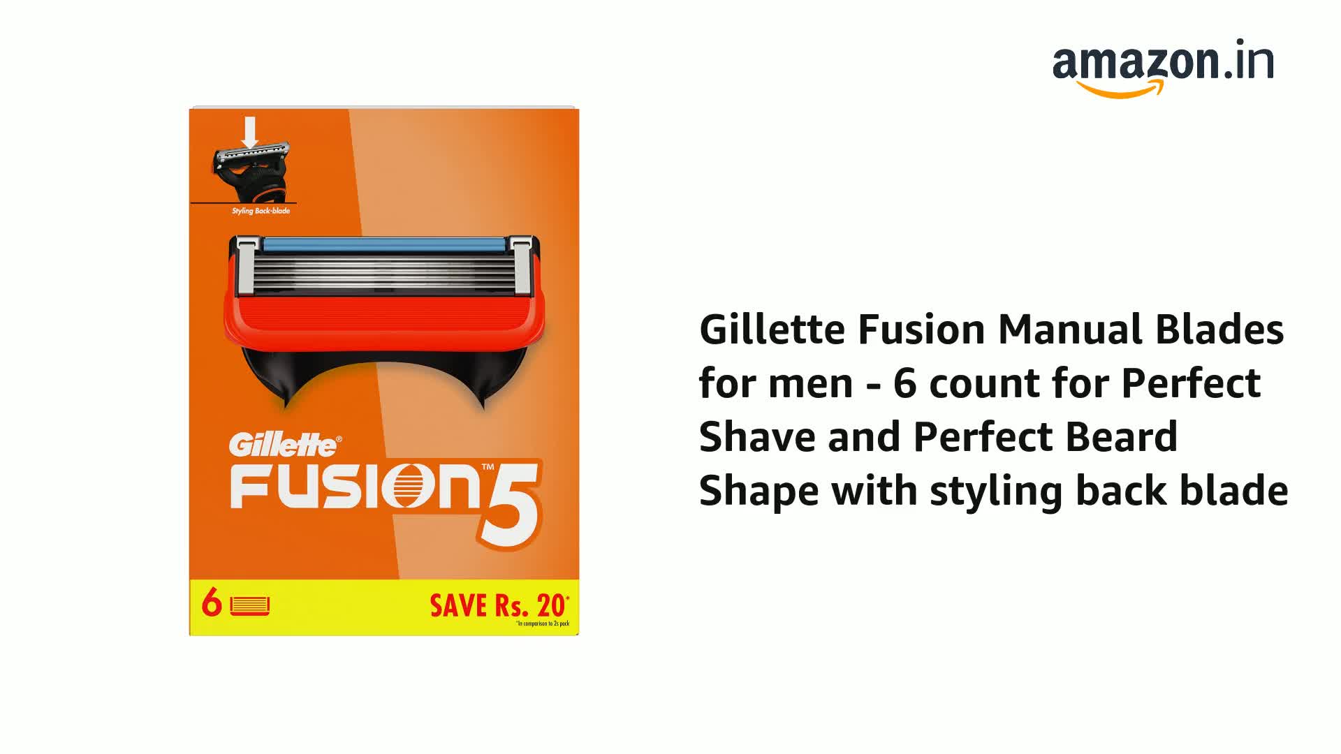 Gillette Fusion Manual Blades for men - 6 count Super Value Pack for Perfect Shave and Perfect Beard Shape with styling back blade| Blades for shaving