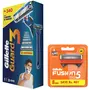 Gillette Fusion Manual Blades for men - 8 count for Perfect Shave and Perfect Beard ShapeGillette Fusion Manual Razor has 5 Blade shaving surface technology spaced closer together for less irritation and more comfort with an ergonomic handle.Precision trimmer (back blade) to own your style. Get perfect beard lines and get barber-like precision at home. an indicator lubra strip that gradually fades to white when you're no longer getting an optimal shave. So you always know when to change the blade.Gillette Guard 3 Single Razor with 8 Blades PackIntroducing the all new Gillette Guard 3. Now with three blades for a closer shave and thrice the ease in a single stroke. The Gillette Guard 3 comes with a unique water activated lubrastrip to give you a comfortable glide while protecting your skin. The ergonomic soft grip handle ensures that you have the perfect hold on your razor while getting the most of your shave. An optimal flexing head that moves with your face for maximum reach and comfort. Get the Gillette Guard 3 and revolutionize your shaving experience. Ab kaam done dona done done!