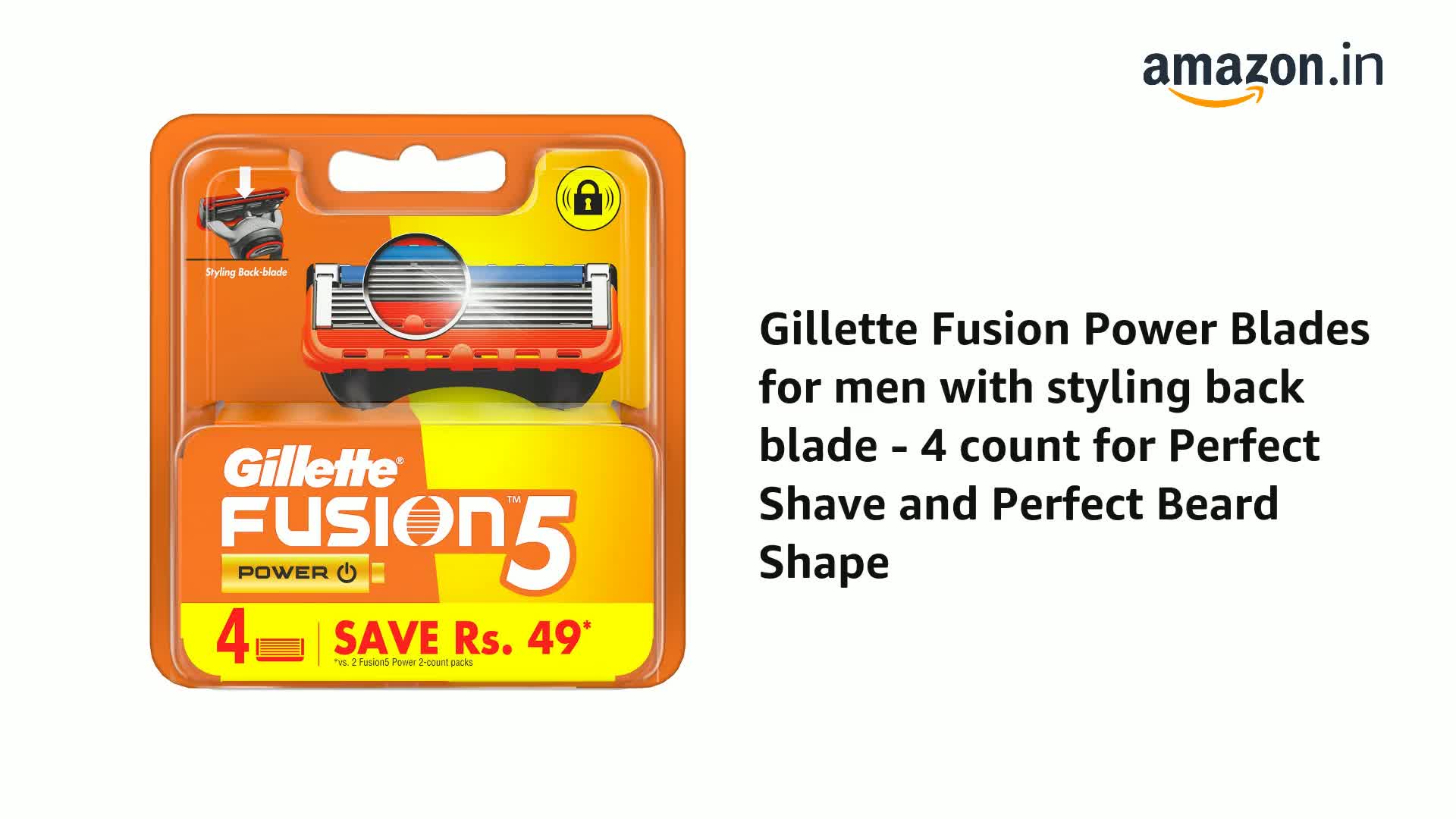 Fusion Power takes comfort technology to a new level. It has independently sprung blades that adjust to your face and helps the razor easily cut through hair. It has oscillating motor that delivers soothing micro pulses which help reduce friction and increase razor glide. A flexible comfort guard that follows the contours of your face and pulls your skin taut for a comfortably close shave. A Precision trimmer technology on the back of the cartridge that shapes all types of beard styles and an indicator lubra strip that gradually fades to white when you're no longer getting an optimal shave. So you always know when to change the blade.