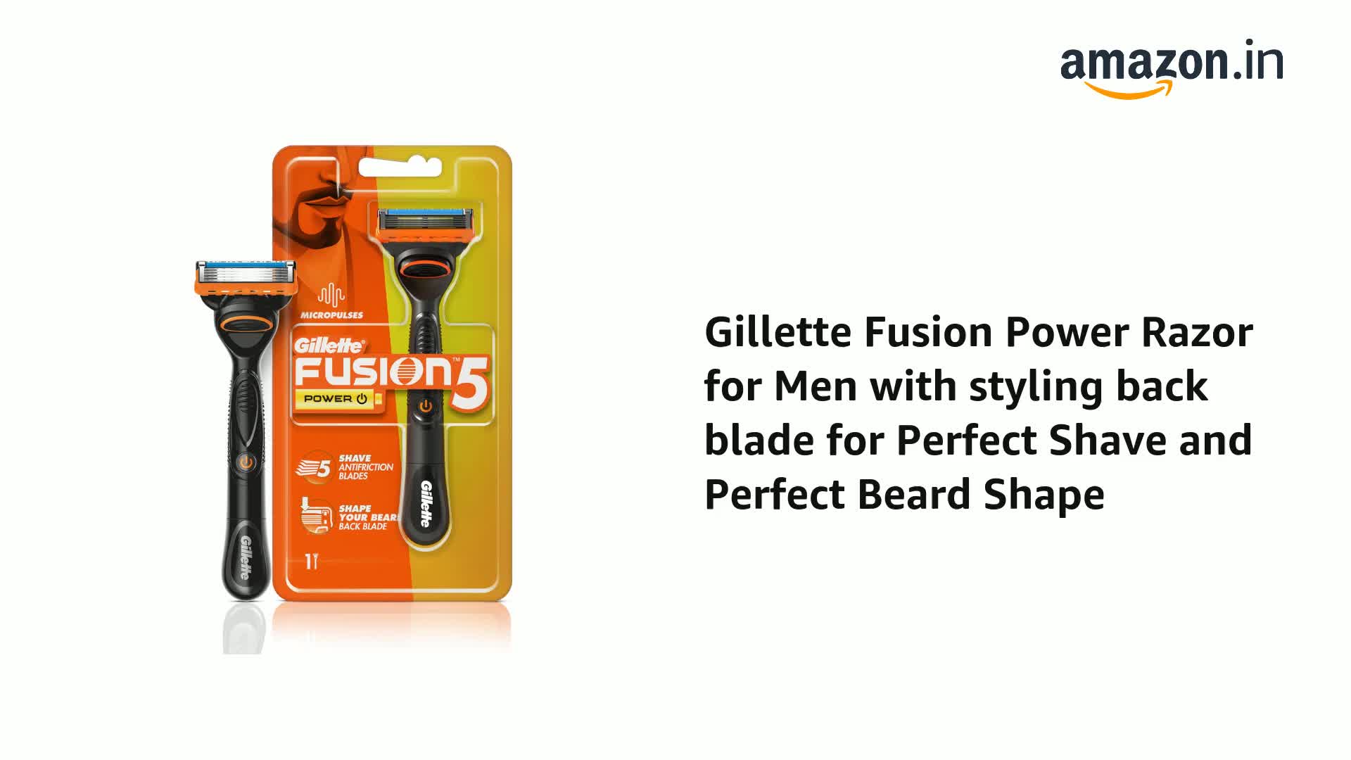 Gillette Fusion Power Razor for Men | 1 Pc | With styling back blade for Perfect Shave and Perfect Beard ShapeFusion Power takes comfort technology to a new level. It has independently sprung blades that adjust to your face and helps the razor easily cut through hair. It has oscillating motor that delivers soothing micro pulses which help reduce friction and increase razor glide. A flexible comfort guard that follows the contours of your face and pulls your skin taut for a comfortably close shave. A Precision trimmer technology on the back of the cartridge that shapes all types of beard styles and an indicator lubra strip that gradually fades to white when you're no longer getting an optimal shave. So you always know when to change the blade.Gillette Classic Regular Pre Shave Foam 418g with 33% Extra FreeGillette Classic Regular Pre Shave Foam 418g with 33% Extra Free Fatty Foam by Procter and Gamble Comfort Glide Formula