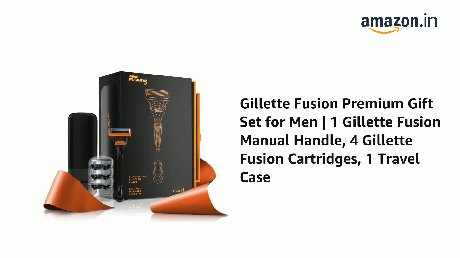 This festive season gift the men in your life with this thoughtfully designed premium gift set for men from Gillette Fusion. This is an ideal choice for gifting because it has everything a man needs to up his grooming game and add an edge to your personality. Quantity - 1 Gillette Fusion Manual Handle 4 Gillette Fusion Cartridges 1 Travel Case Free Travel Case Inside Gillette Fusion premium gift set for men is your answer for the ideal gift to the men in your life this gifting season. So surprise him with this bundle of joy and emotion wrapped into one which he will surely love.