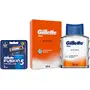 Gillette Fusion Proglide Blades for men - 2 count for Perfect Shave and Perfect Beard ShapeMost men who shave regularly complain of missed hairs and that too in the highly contoured areas of the face. That's because while razor pivots usually offer two-dimensional movement our faces are essentially three-dimensional. Hence all the pulling and stretching to make flat surfaces where there isn't one. Introducing the Gillette Fusion ProGlide Razor with FLEXBALL Technology a new era of shaving technology developed with over 5 years of research and extensive trials with volunteers across the globe. The FLEXBALL Technology allows the blades to pivot front to back as well as from side to side (up to 24 degrees). This ensures that the full width of the cartridge gets to be more evenly in contact with your jawline getting virtually every hair. And with the pivot in motion more than 80% of the time it relieves your wrist elbow and shoulder joints of the extra pressure. In other words the razor puts in all the effort so you don't have to. And what you wake up to every morning is the most precise closest and effortless shave. It also has a Precision trimmer technology on the back of the cartridge that shapes all types of beard styles and an indicator lubra strip that gradually fades to white when you're no longer getting an optimal shave. So you always know when to change the blade.Gillette PRO AFTER SHAVE SPLASH ICY COOL 100ML WhiteLong Lasting Fragrance Gillette Series Icy Cool After Shave splash is matured and filtered for a long lasting fragrance and blended with moisturizers to tone your skin. Refreshes with a clean crisp masculine fragrance. Provides immediate relief after shaving and completes the shaving ritual. Apply to skin after shaving massaging gently to facilitate absorption and provide a refreshing cooling effect.