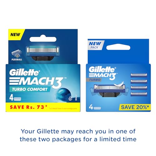 Gillette Mach 3 Turbo Manual Shaving Razor Blades - 8s Pack (Cartridge)The three blades of the Gillette MACH3 Turbo are treated with an Advanced Anti-Friction Coating allowing the MACH3 Turbo to remove each hair with less irritation. Soft protective Microfins gently smooth down the skin allowing the MACH3 Turbo to shave evenly and effortlessly. The Indicator Lubrication Strip ensures that your MACH3 Turbo razor blade keeps gliding across your skin shave after shave.GILLETTE Mach 3 Shaving Razor (Handle + 2 Cartridge)Gillette mach3 men's razor blade refills feature stronger-than-steel blades that stay sharper longer. With sharper blades it is engineered to last for 15 comfortable shaves. These Gillette razors feature a lubrication strip that glides to help protect your skin from redness and a micro fin skin guard that stretches the skin and prepares hair to be cut. Mach3 men's razor blade refills fit all mach3 razors. Gillette mach3 gives a better shave than a new 2-bladed ordinary razor even after 5 weeks.