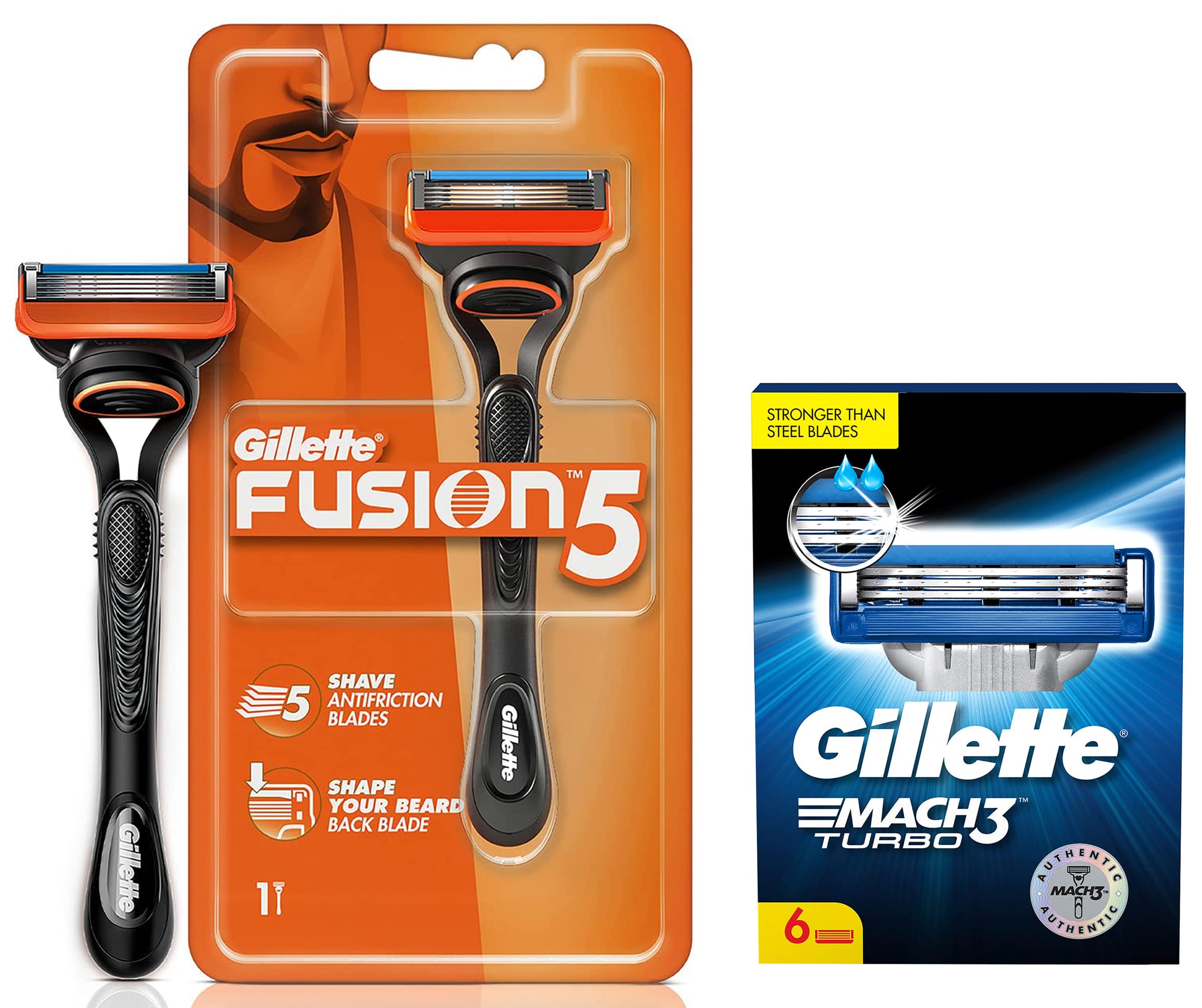 Gillette Mach Turbo 3 Shaving Blades- Pack of 6 (Cartridges) & Gillette Fusion Manual Razor for Men for Perfect Shave and Perfect Beard Shape