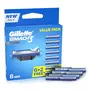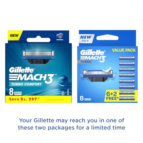 The three blades of the Gillette MACH3 Turbo are treated with an Advanced Anti-Friction Coating allowing the MACH3 Turbo to remove each hair with less irritation. Soft protective Microfins gently smooth down the skin allowing the MACH3 Turbo to shave evenly and effortlessly. The Indicator Lubrication Strip ensures that your MACH3 Turbo razor blade keeps gliding across your skin shave after shave.