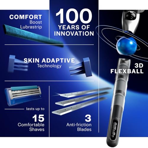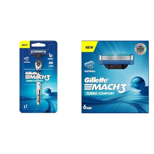 Gillette Mach3 Turbo Men's Razor with Flexball Technology | Pack of 1 Razor and Gillette Mach Turbo 3 Shaving Blades- Pack of 6 (Cartridges)