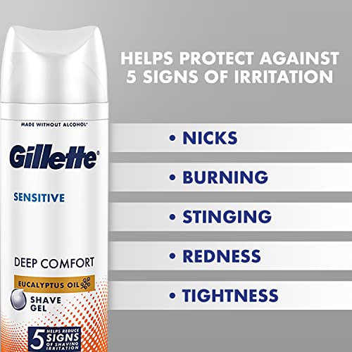 Gillette Sensitive Shave Gel Deep Comfort | 0% Paraben | 195 g WhiteGillette Pro Icy Cool Menthol Shave Gel leaves sensitive skin feeling smooth cool and refreshed. This unique formula combines Gillette's best shave gel with the feeling of a cooling aftershave for incredible skin comfort before during and after your shave. It gives a superior glide vs foams for a perfect shave.Gillette Mach 3 Manual Shaving Razor Blades - 2s Pack (Cartridge)The original MACH3 continues its legacy of close shaves. Its 3Blade technology offers a comfortable shave along with the longevity that comes only with exchangeable blades. Its Comfort Guard includes 5 Microfins to bring you a close comfortable shave while the Indicator Lubrication Strip fades to white to show when you are no longer getting an optimal shave from your razor blade. Still a trusted choice the MACH3 continues to give men around the world a great start to their day..