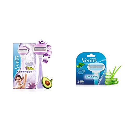 Gillette Venus Hair Removal Razor Blades/Refills/Cartridges for Women - 4 Pieces (Aloe Vera)Gillette Venus Hair Removal Razor Blades/Refills/Cartridges for Women - 4 Pieces (Aloe Vera) Glide strip with aloe vera extracts and vitamin E Flexible pivoting head that glides smoothly along your curves Rounded head with three movable blades that removes even fine hair by Procter and GambleGillette Venus Breeze Hair Removal Razor for Women with Avocado Oils & Body Butter Freesia Scent 1 PcGillette Venus Breeze is the perfect solution for smooth and easy hair removal razor for women. Simply apply water glide Venus Breeze against the direction of hair growth and then wash and apply your favorite moisturizer! The in-built gel bars with avocado oil for glide and freesia scent contain rich body butters and leave you with your smooth Venus skin in a few minutes! Each refill lasts 2 months (depending on usage - basis full body hair removal once a week) post which you can purchase the refills pack. This hair remover can be used by any woman/girl on face arms underarms legs and full body including the sensitive bikini area.