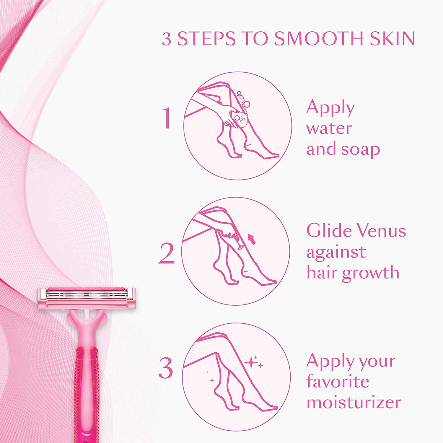 Designed as an easy to use hair removal razor for women simply venus 3' use and throw disposable razors provide you easy hair removal and smooth skin . Simply apply water glide venus razor against the direction of the hair growth and then wash and apply your favourite moisturizer. You can use simply venus 3 for hair removal for 3 weeks.This hair remover can be used by any woman/girl on face arms underarms legs and full body including the sensitive bikini area.