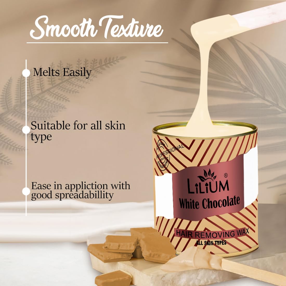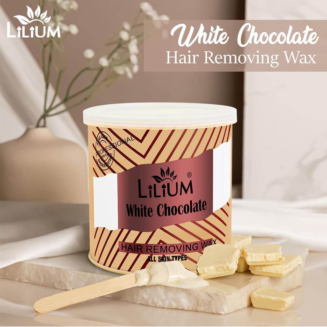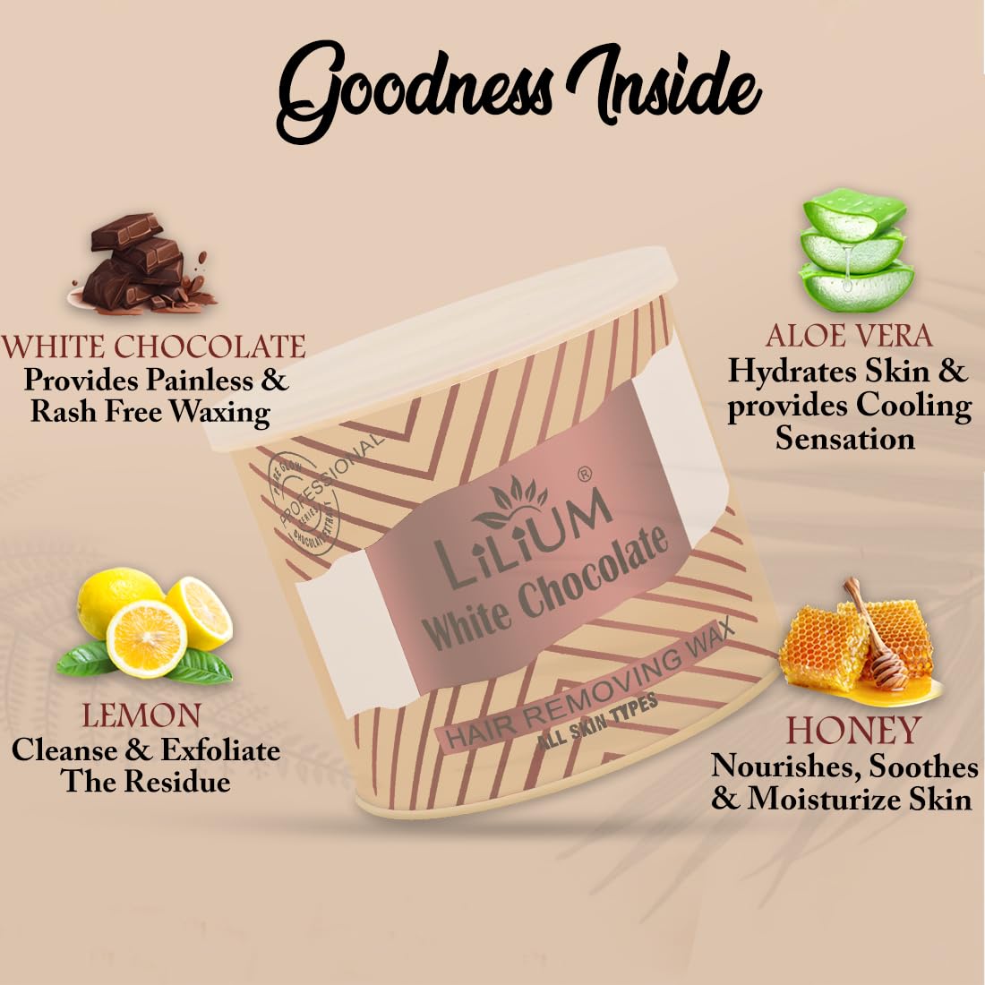 HomeBeautyBodyShaving & Hair RemovalLilium White Chocolate Hair Removing Wax 600gm | For Legs Arms Underarms Bikini Line & Full Body | Moisturize & Nourishes Skin | Easy & Quick Hair Removal At Home | Men & Women | All Skin Types