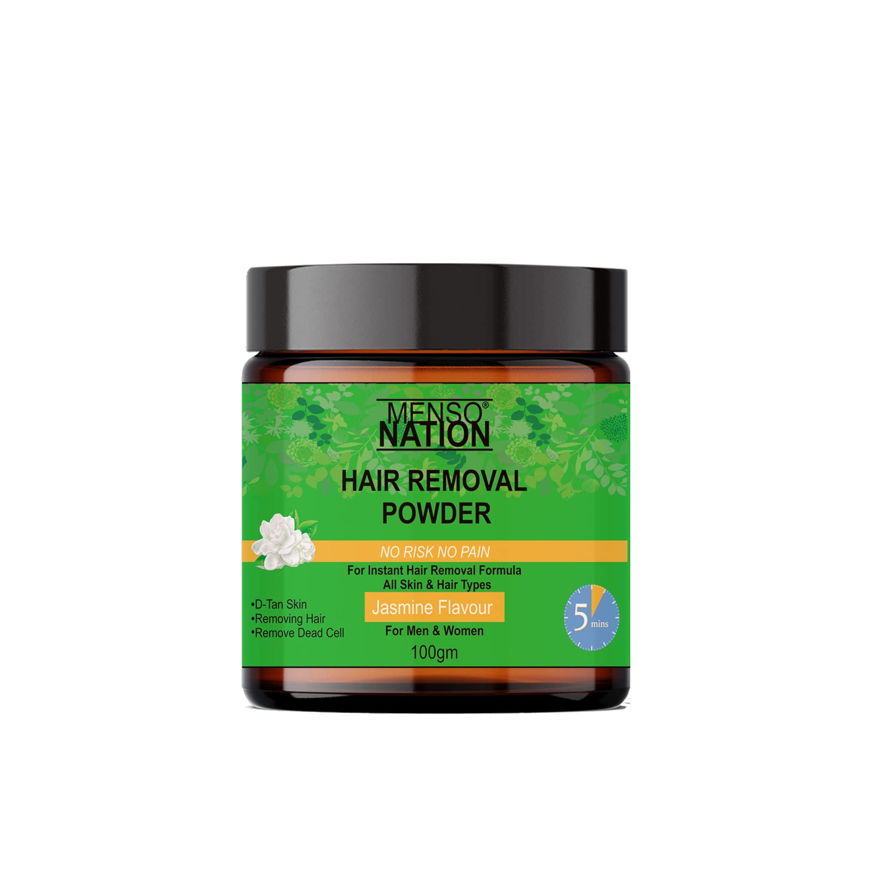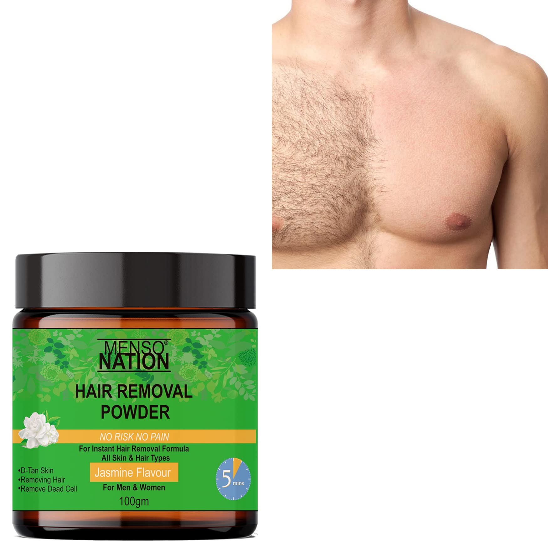 Mensonation Hair Removal Powder for removing Hairs & D Tanning for Legs Forearms Chest Back JASMINE Fragrance 100 Gms (100)