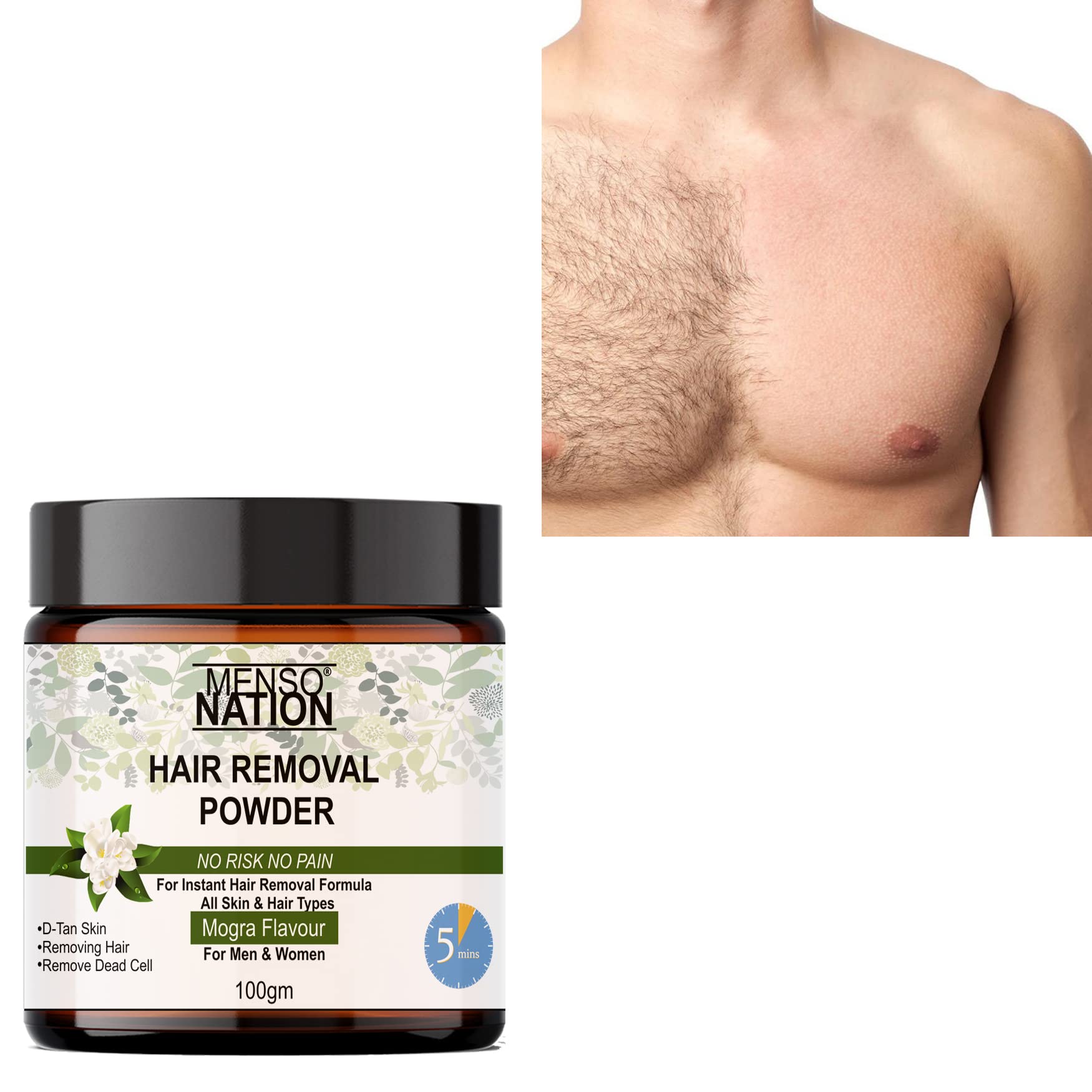 Mensonation Hair Removal Powder for removing Hairs & D Tanning for Legs Forearms Chest Back MOGRA Fragrance 100 Gms (100)