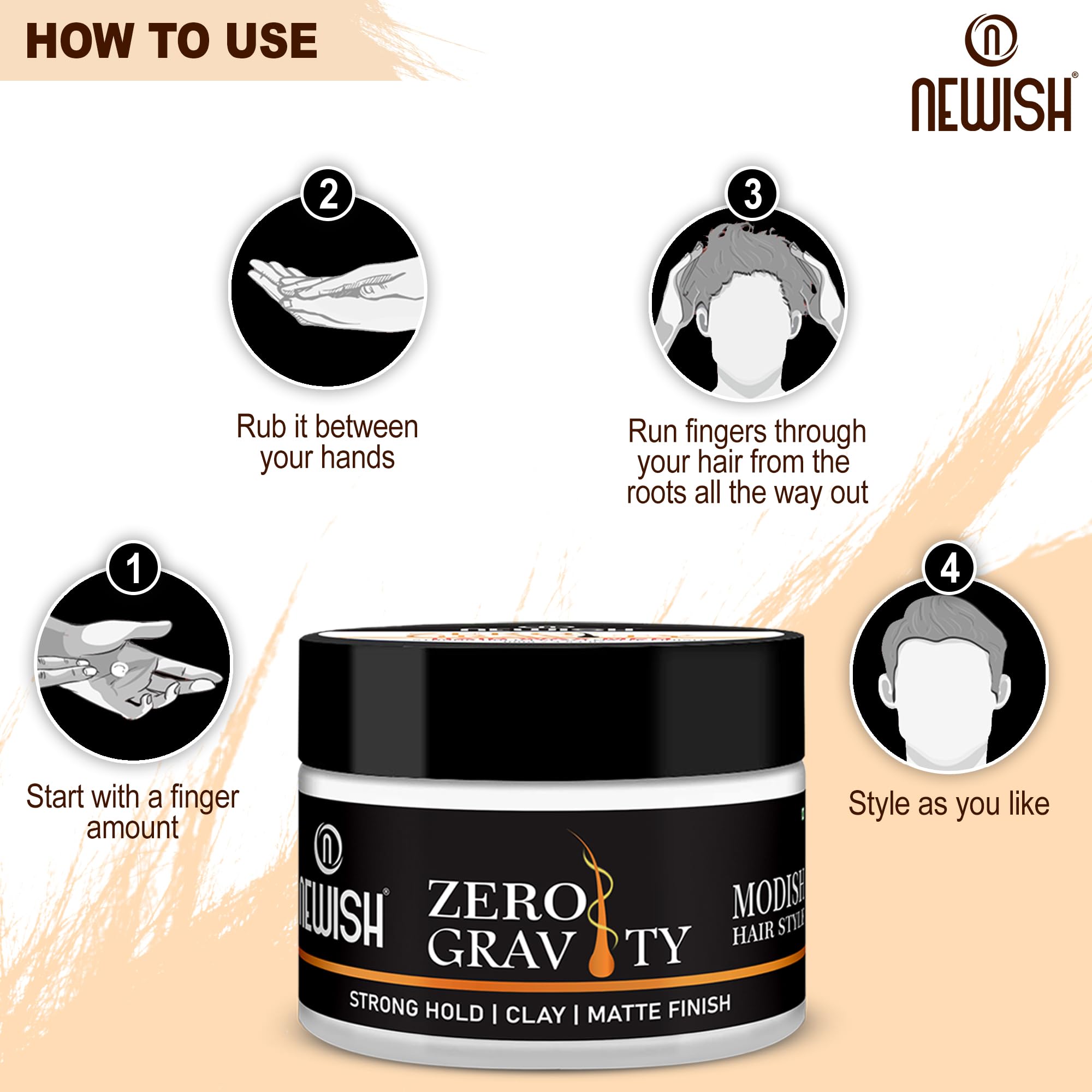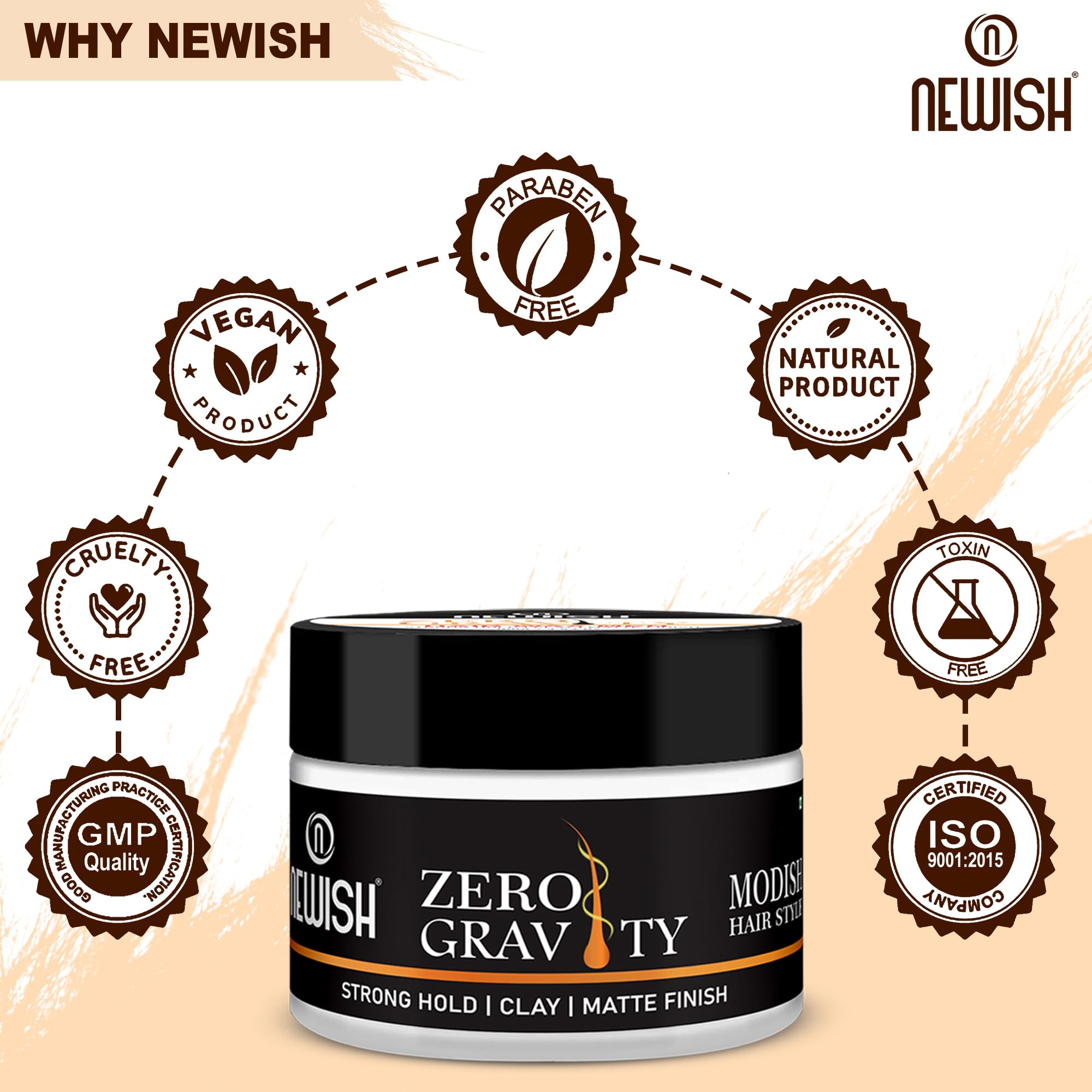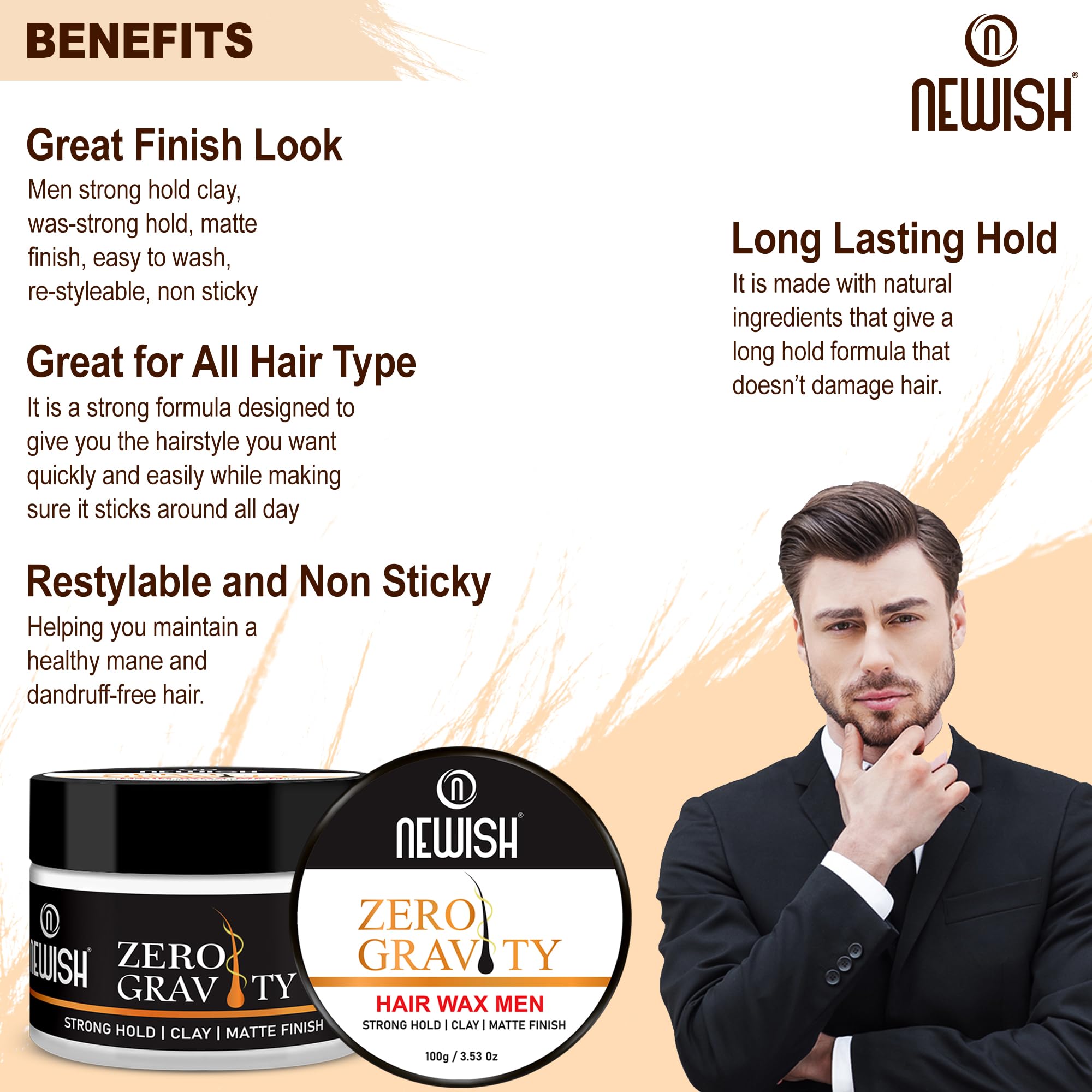 HomeBeautyBodyShaving & Hair RemovalNewish Zero Gravity Hair Wax for Men | 100 gm | Strong Hold Matte Finish Long-Lasting | Hair Styling Wax for All Hair Types