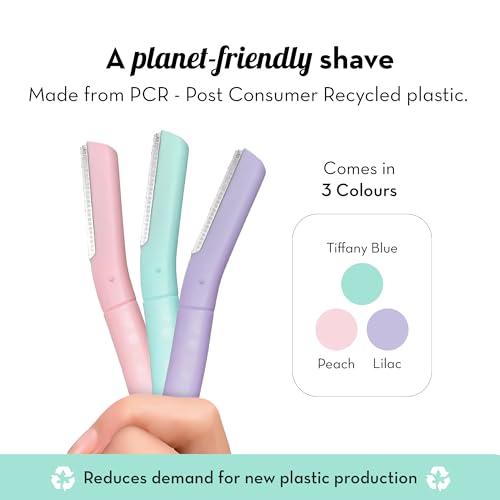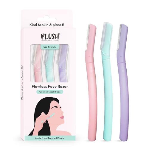 Plush Flawless Reusable Face Razor for Woman (Pack of 3) | Eyebrow & Facial razor with Single German Steel Blade | Instant & Painless Hair Removal for Upper Lips, Forehead, Sideburns | Prevents Razor Burns