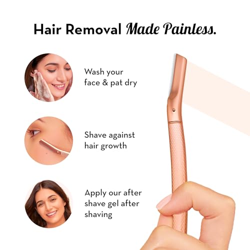 Plush Reusable Metal Face & Eyebrow Razor For Women | Rose Gold Finish Zinc Body | 3 Additional Blades for Painless Facial Hair Removal | For Eyebrows, Upper Lip, Forehead & Chin | For All Skin Types