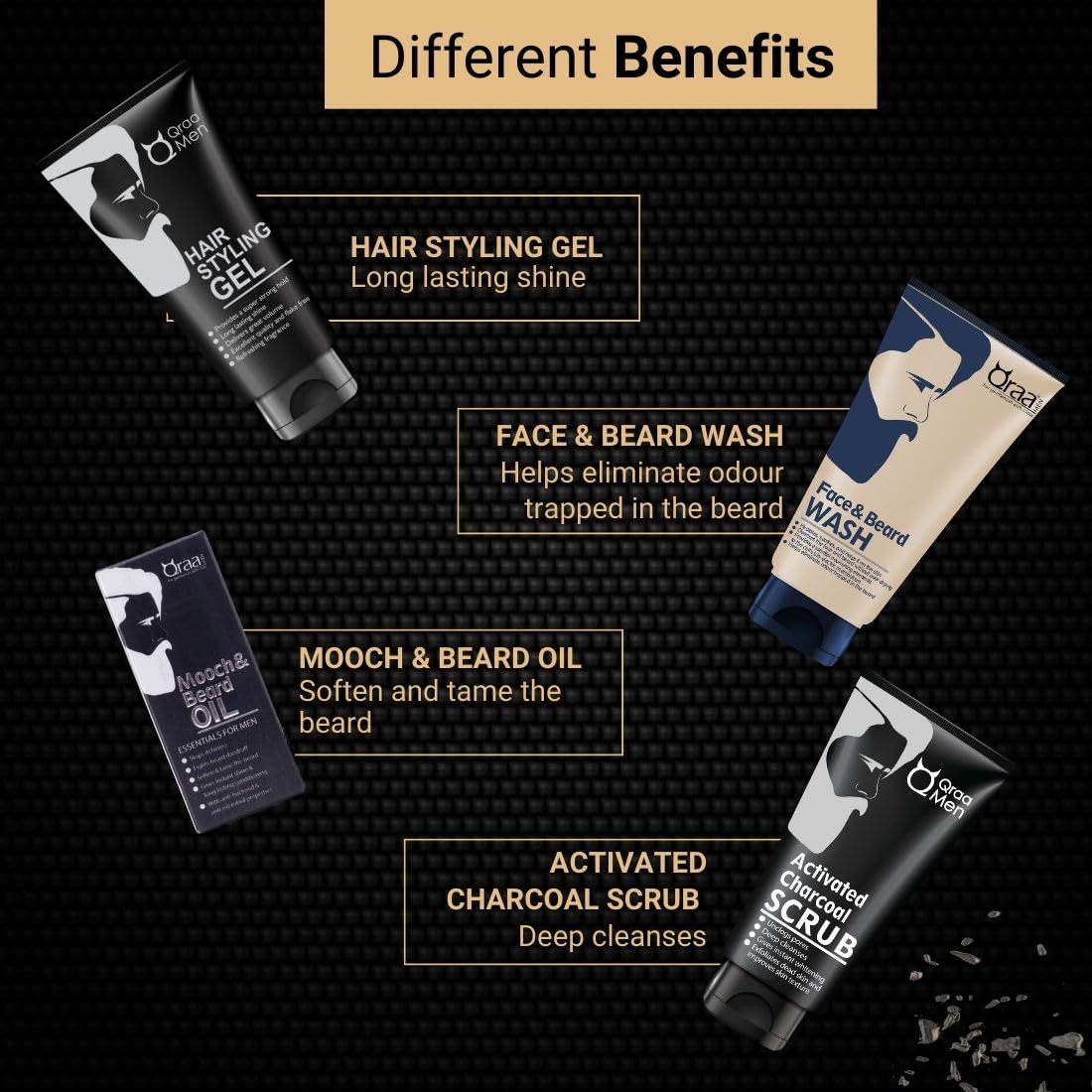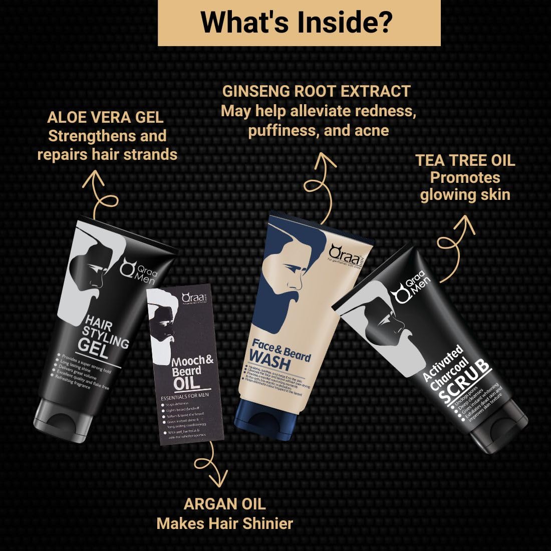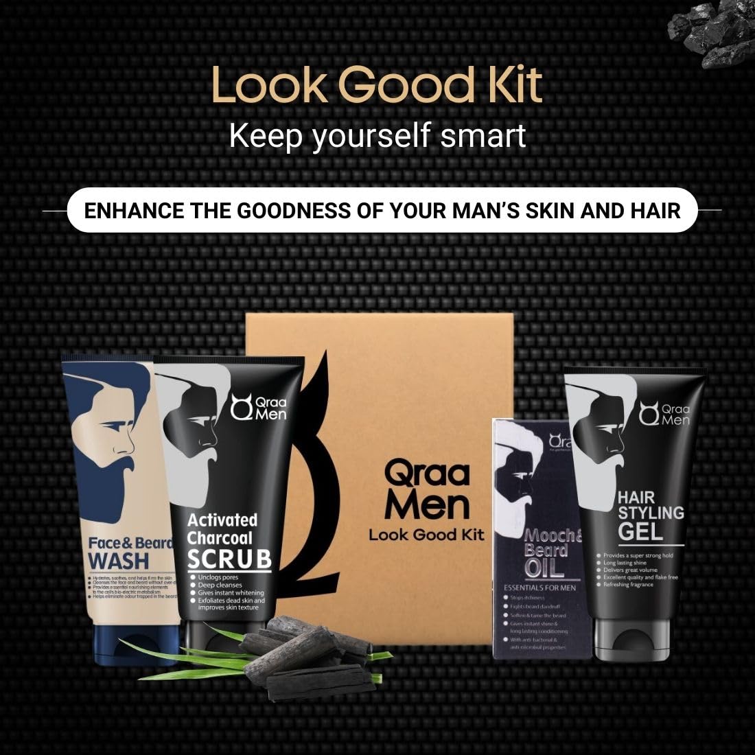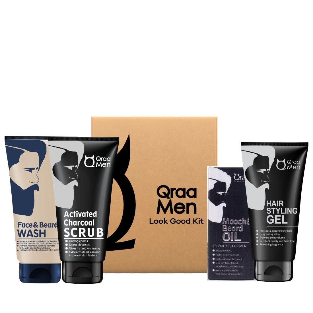Qraa Men Look Good Kit 330 g (Pack of Face Wash Styling Gel Scrub & Beard Oil) Premium gift box for Men