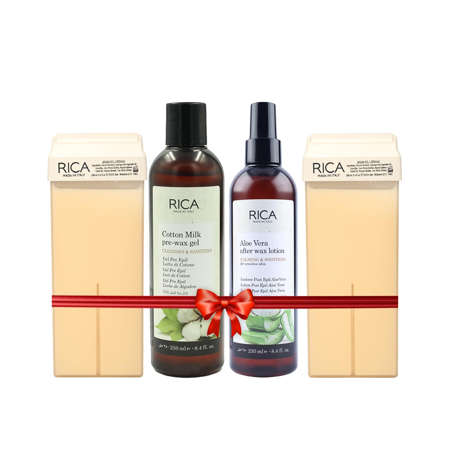 Rica Argan Roll On Waxing Kit - Set of 2 Refill Wax 100 ML 1 Pre Wax Gel 1 Post Wax Lotion