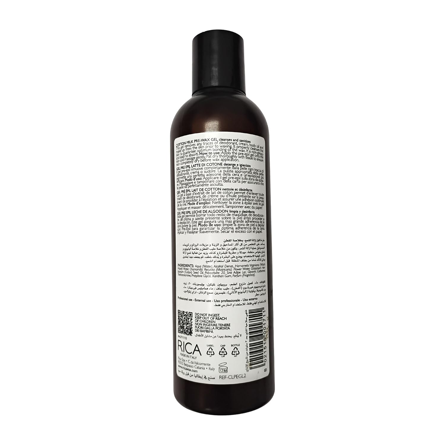 Rica Cotton Milk Pre Waxing Gel | Hair Waxing preparation with Natural Extracts for Hydration & Softening Skin - 250ml