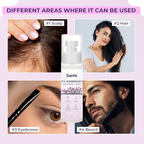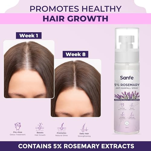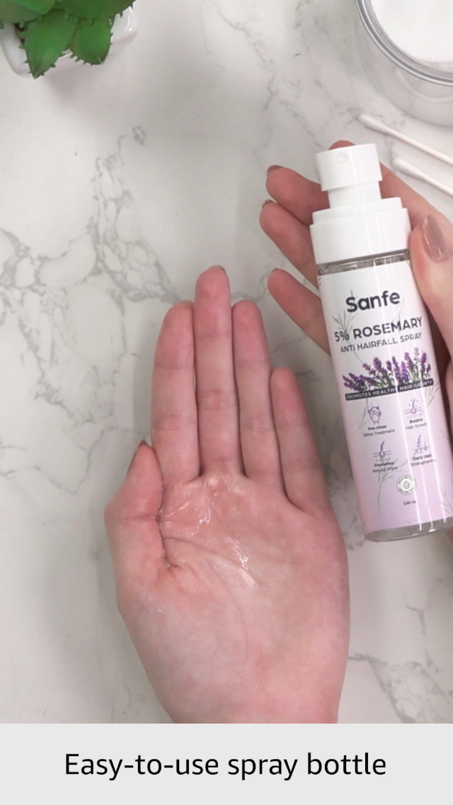 Unlock the secret to beautiful hair with Sanfe 5% Rosemary Anti-Hairfall Spray the ultimate time-saving solution for vibrant healthy locks. Skip the steeping process and enjoy the powerful benefits of rosemary extracts with just a few sprays. This ready-to-use formula enhances hair growth adds shine tames frizz and reduces hair fall all while delivering a refreshing scent that lasts throughout the day. Rosemary is renowned for its hair-enhancing properties. The sprayâs anti-inflammatory agents soothe the scalp while its shine-boosting effects leave your hair looking glossy and vibrant.