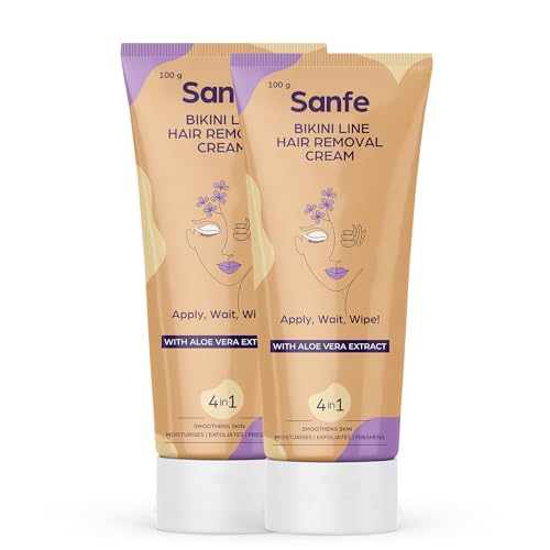 Sanfe Bikini Line Hair Removal Cream WIth Aloe Vera Extract Perfect for Legs, Underarms, Bikini Line, Arms | 3x Longer Lasting Smoothness than Razors | With No Bad Smell - 100 Gram (Pack Of 2)