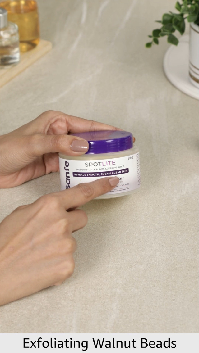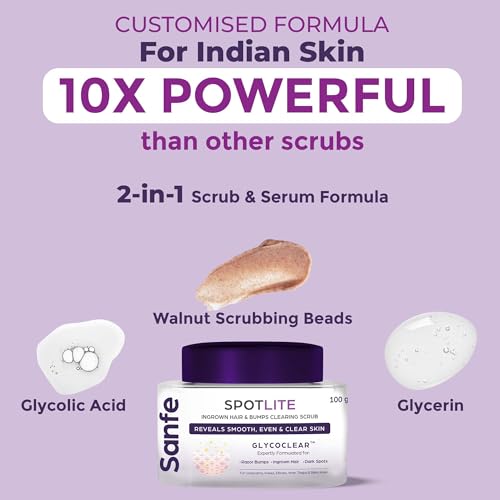 Sanfe Spotlite Ingrown Hair & Bumps Clearing Body Scrub For Dark Underarms, Inner Thighs And Sensitive Areas | 3X Quicker Penetration With Glycoclear | 10% Glycolic Acid, Walnut Beads | Helps in Depigmentation - 100gm, For Indian Women Skin