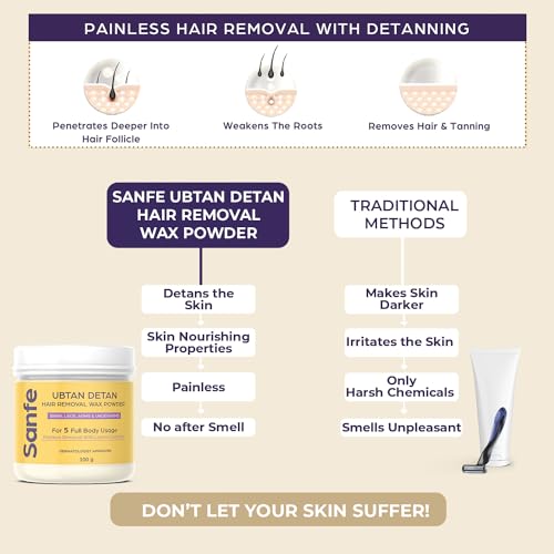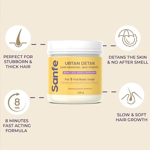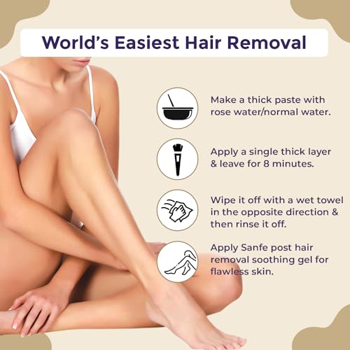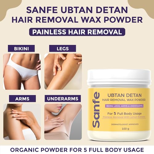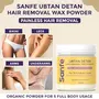 Sanfe Hair Removal Wax Powder is an organic powder which offers both hair removal & detanning. Hair removal is a very dire part of one's personal care routine; but with our 8 minute hair removal formula - you save time cost as well as get a mess free experience. No more razor bumps ingrowns and pain? forget it.