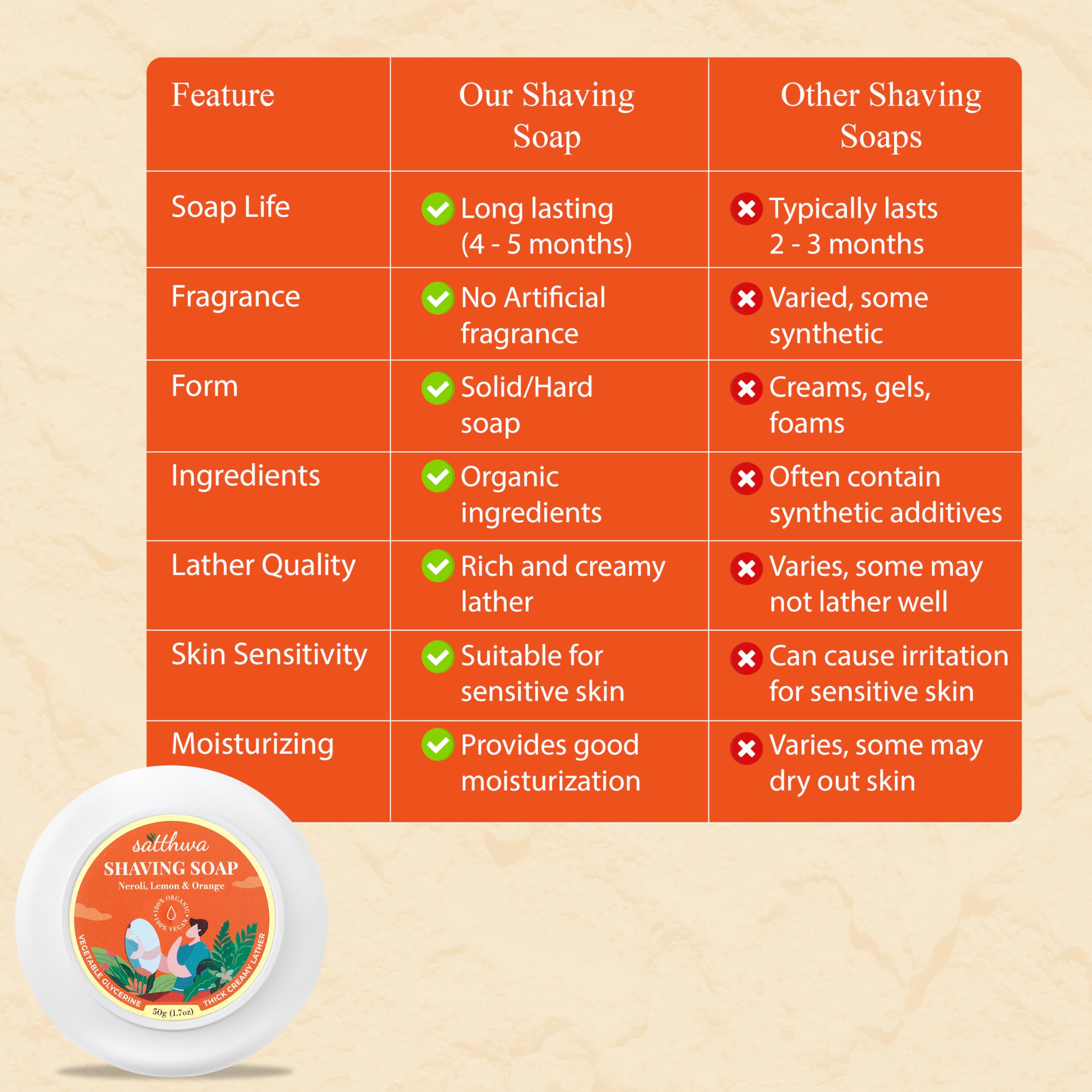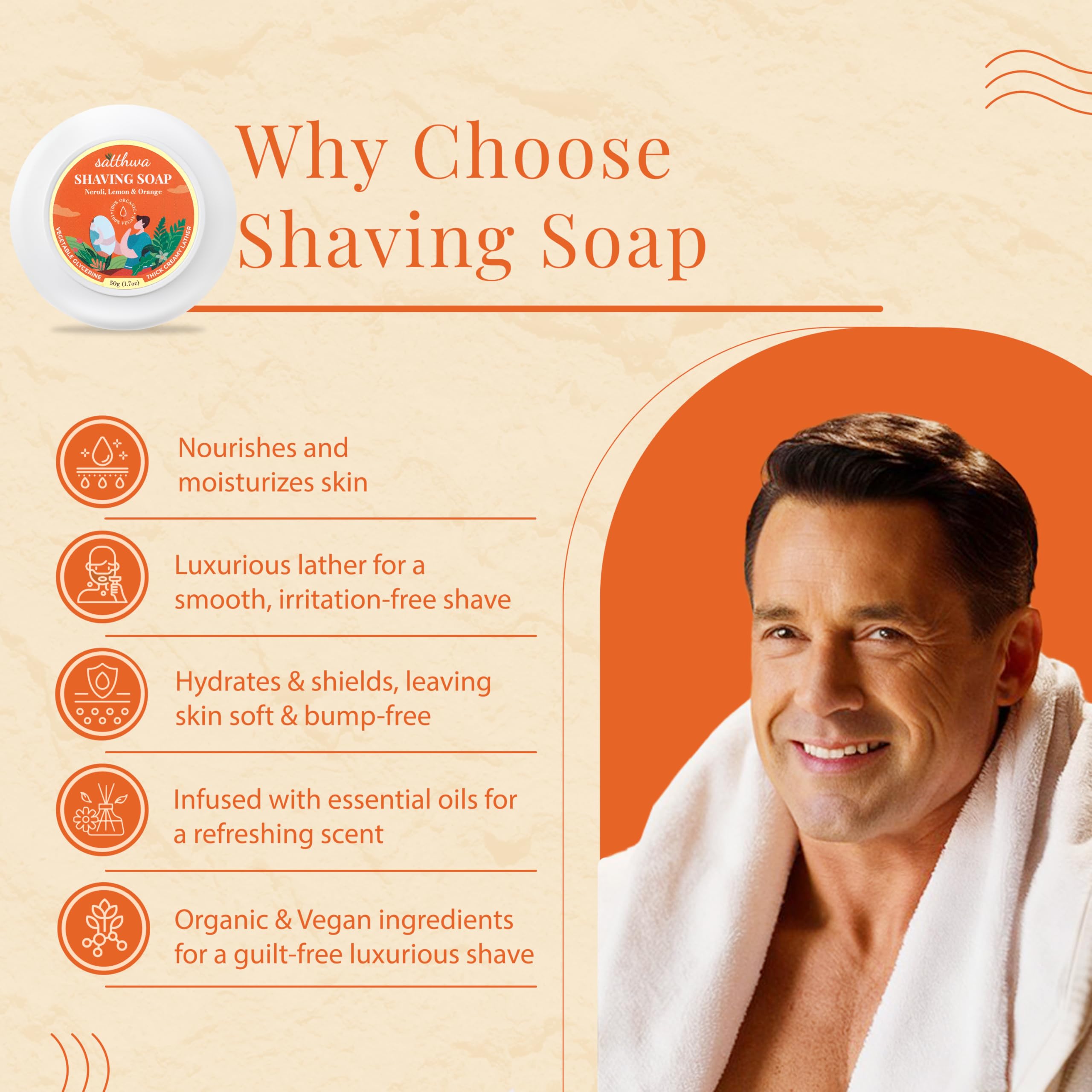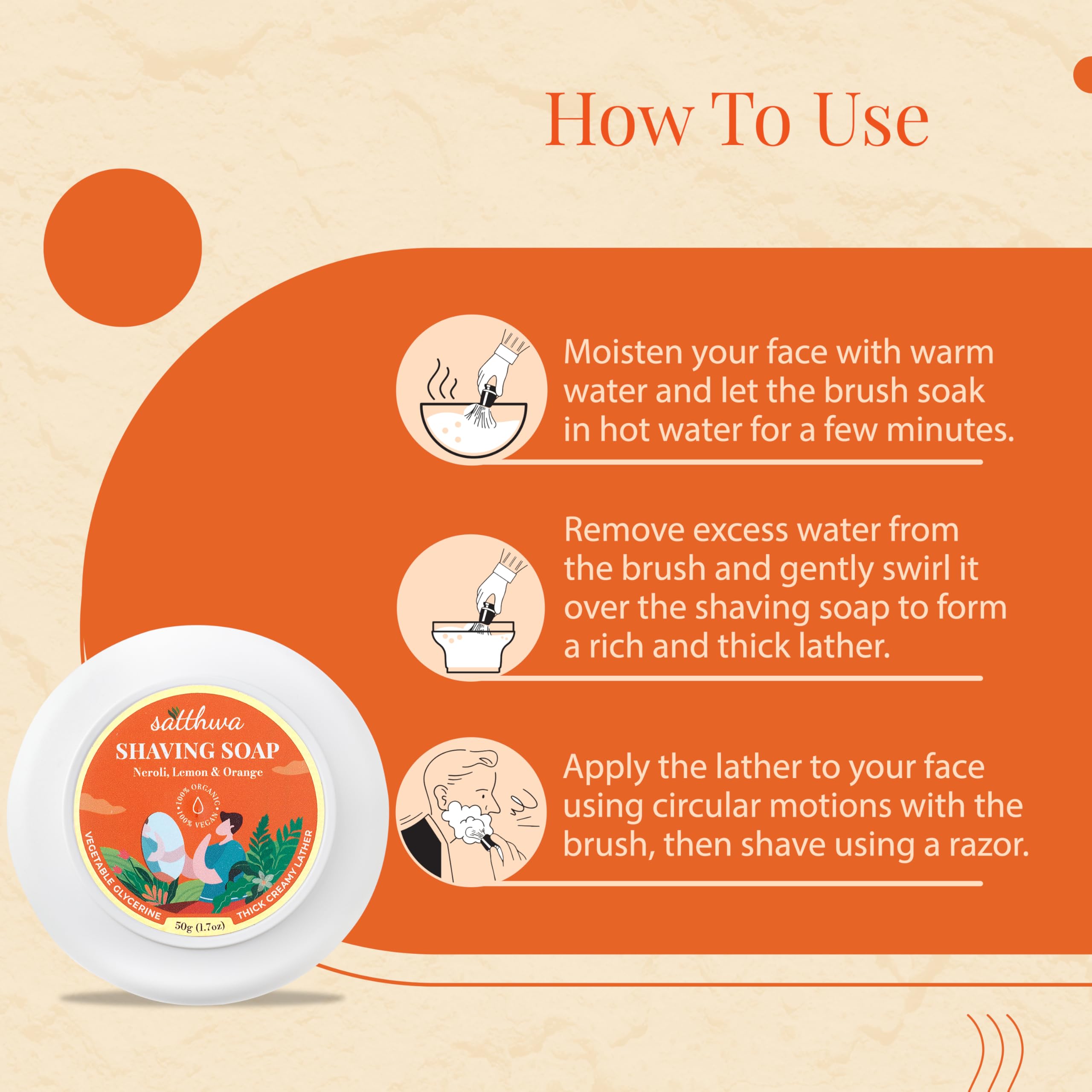 Satthwa Organic Shaving Soap infused with Neroli Lemon & Orange | Create the Perfect Lather | Excellent for Silky Smooth Shaves | Hydrates and Shields 50g (1.7oz)