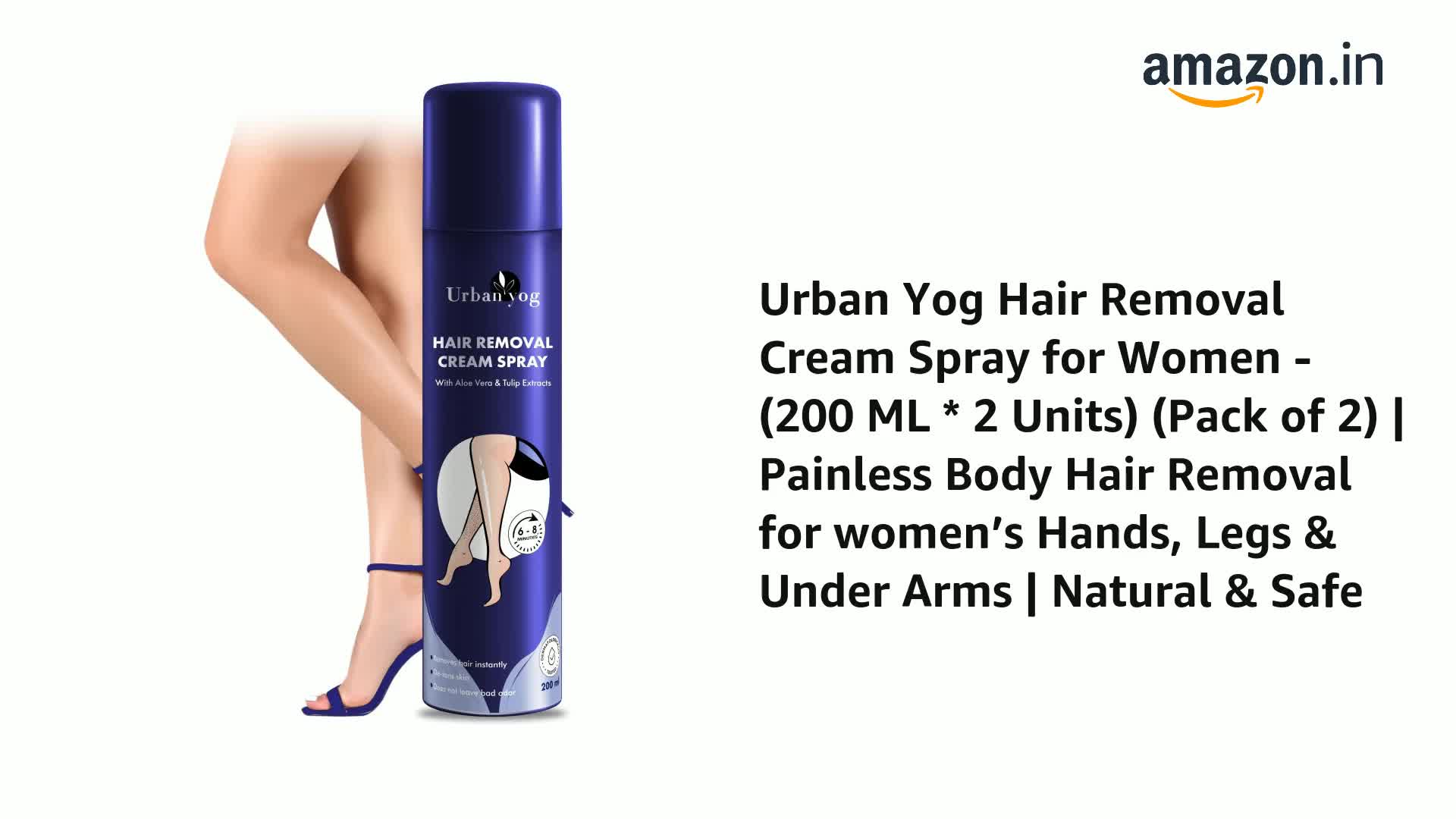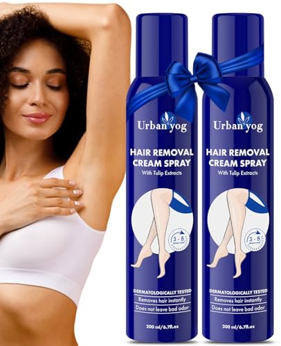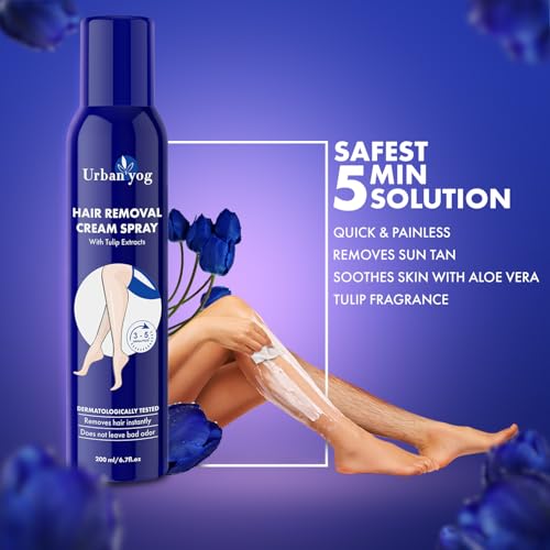 HomeBeautyBodyShaving & Hair RemovalUrban yog Hair Removal Cream Spray for Women | Painless Body Hair Removal Spray for legs, hands, underarm & back (200 ml (pack of 2), Tulip (Blue))