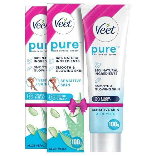 Get the smooth skin and the freedom to wear any look any time with Veet. Veet Pure Hair Removal Cream for Sensitive Skin enriched with Aloe Vera is the right solution when going to the salon is not an option. It effectively removes even short stubborn hair and leaves skin moisturized for up to 24 hours*. It can be used on legs arms bikini line and underarms for a perfectly finished smooth moisturized and exfoliated skin. Veet Pure Hair Removal Cream for Sensitive Skin gives you perfect hair removal results in just 5-10 minutes. Follow the steps mentioned on the pack using the spatula provided. Before using the product please read pack precautions carefully. With regular use; get fewer finer and softer hair growing back!