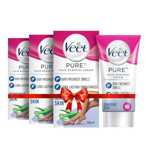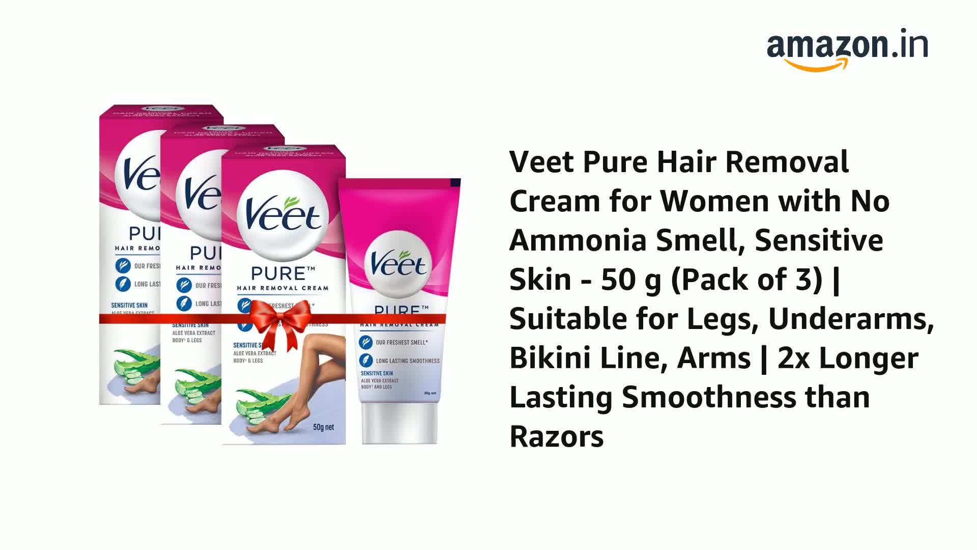 Veet Pure Hair Removal Cream for Women with No Ammonia Smell, Sensitive Skin - 50 g (Pack of 3) | Suitable for Legs, Underarms, Bikini Line, Arms | 2x Longer Lasting Smoothness than Razors
