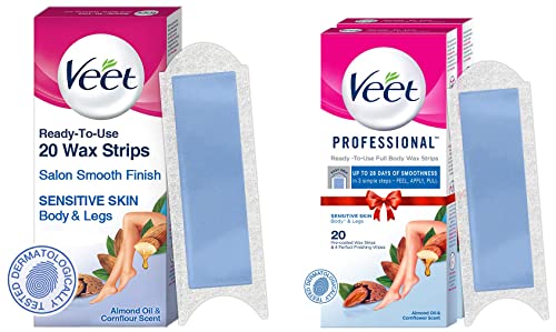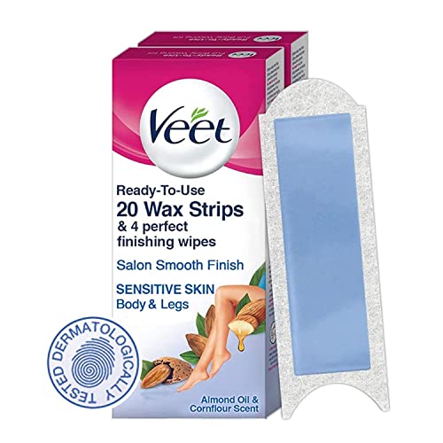 Veet Waxing Strips Kit for Sensitive Skin 20 Strips (Pack of 2) | Cold Gel Wax Hair Removal for Women | Upto 28 Days of Smoothness | No Wax Heater or Wax Beans RequiredGet the salon-smooth skin and the freedom to wear any look any time with Veet. Veet ready-to-use wax strips is the perfect solution when going to the salon is not an option. These DIY strips effectively pull out as short as 1. 5 mm short hair giving you up to 28 days of lasting smoothness and instantly exfoliated skin at the comfort of your home or on-the-go. Just follow 3 simple steps: Peel-Apply-Pull. These wax strips are great for instant use and do not require heating which means no mess! Use the perfect finishing wipes provided with each pack for easy cleaning post-use. With regular use; get fewer finer and softer hair growing back!Veet Full Body Waxing Strips Kit For Sensitive Skin (20 Strips) | Cold Gel Wax Hair Removal for Women | Upto 28 Days of Smoothness | No Wax Heater or Wax Beans RequiredGet the salon-smooth skin and the freedom to wear any look any time with Veet. Veet ready-to-use wax strips is the perfect solution when going to the salon is not an option. These DIY strips effectively pull out as short as 1. 5 mm short hair giving you up to 28 days of lasting smoothness and instantly exfoliated skin at the comfort of your home or on-the-go. Just follow 3 simple steps: Peel-Apply-Pull. These wax strips are great for instant use and do not require heating which means no mess! Use the perfect finishing wipes provided with each pack for easy cleaning post-use. With regular use; get fewer finer and softer hair growing back! NOT SUITABLE for use on head face eyes nose ears around the anus genitals and nipples or any other body parts.