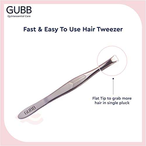 GUBB Metal Flat Tip Tweezer for Women - Precision Eyebrow and Upper Lip Hair Removal - Professional Stainless Steel Tweezer for Salon-Quality Grooming - Silver Finish - Fine-Tipped Precision Tool