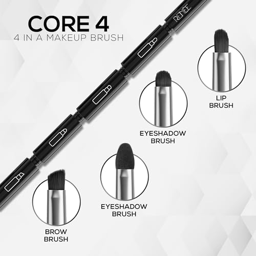 Meet your CORE makeup goals. Got a makeup drawer that's filled with brushes that you have never used as you usually forget or do not have enough space to carry? Say hello to RENEE CORE 4-in-1 Makeup Brush your multipurpose wand to bring some order and endless possibilities to your makeup application. This genius brush features not one but 4 removable brushes each with uniquely shaped bristles. With an oval slanted pointed and angled brush all in one handy applicator you'll be creating a variety of stunning looks in no time. With RENEE CORE 4-in-1 in your bag you will never fall short of your artistic abilities wherever you go.
