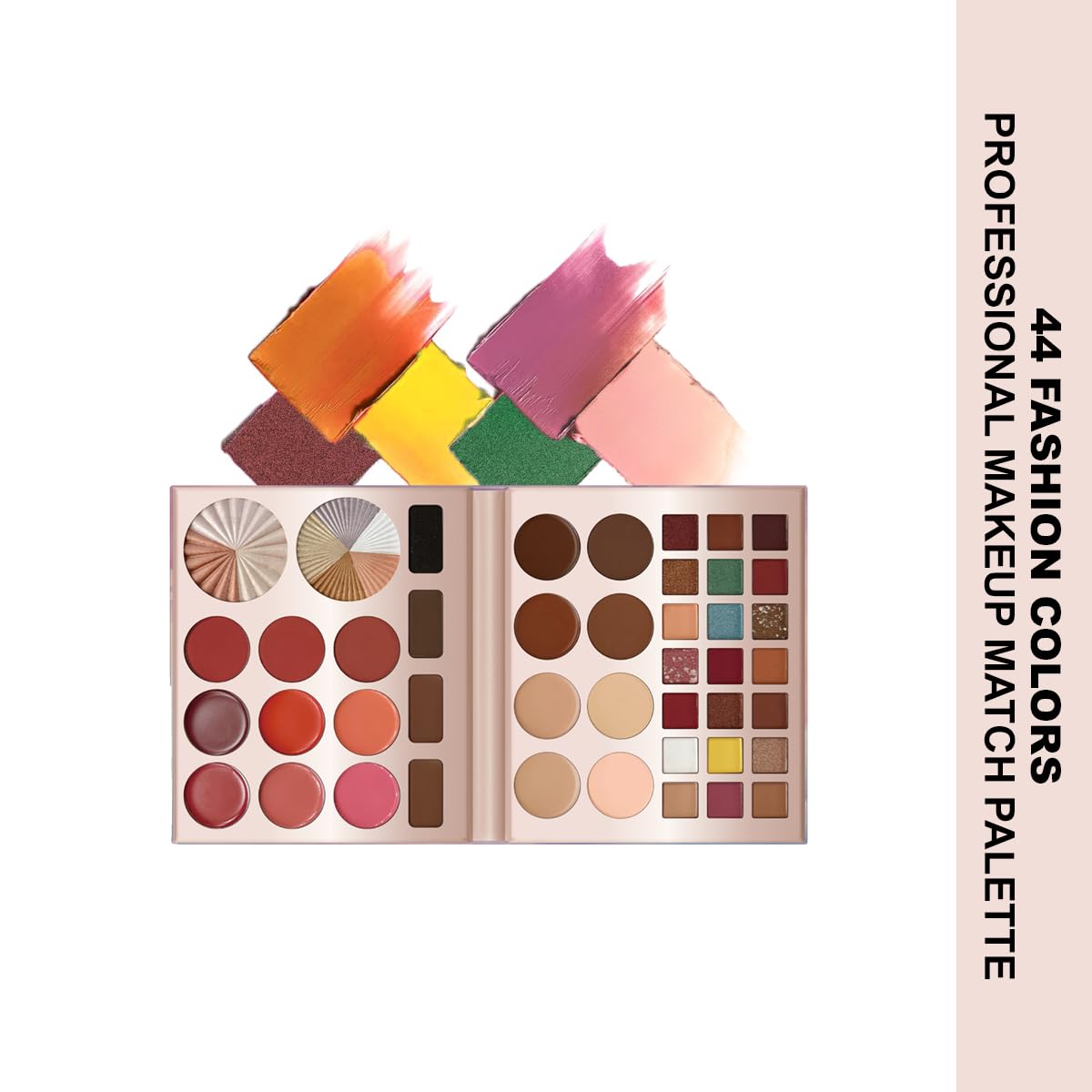 • 44 Versatile Colors: A comprehensive palette featuring shades for highlighting contouring blushing eyebrow defining and eyeshadow application all in one.