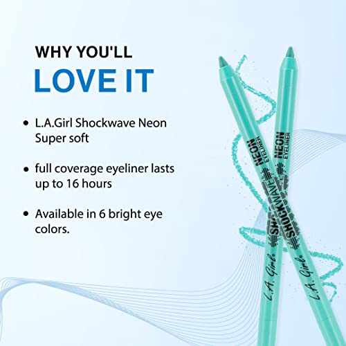 L.A GIRL Shockwave Neon Matte Eye Liner, Fresh Teal, 1.2g | Waterproof & Water-resistant gel Crayon Eyeliner | Smudgeproof Makeup Eye Liner Definer | Vegan & Cruelty-Free