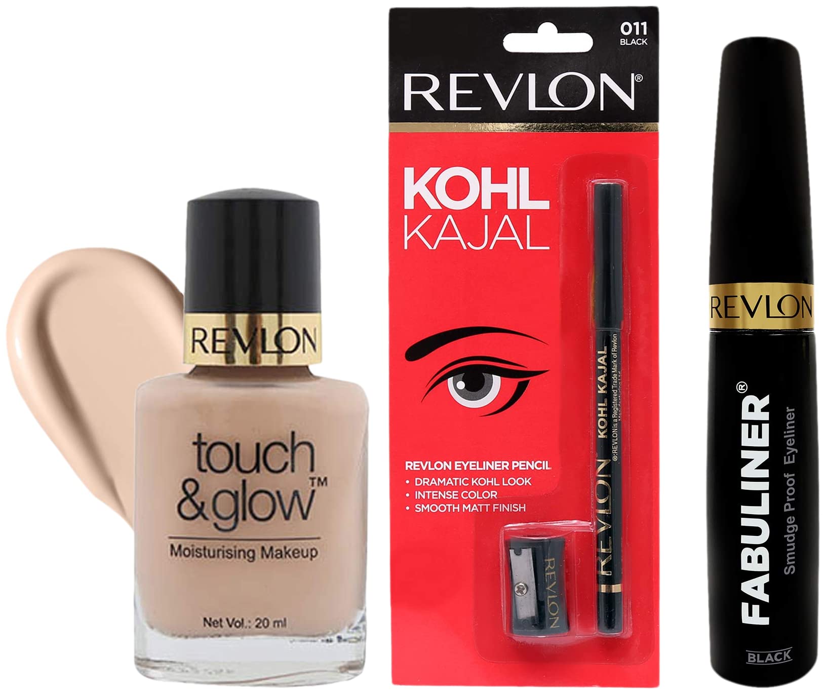 Revlon Kohl Kajal Eye Liner Pencil With Sharpener Black 1.14gAll of the ingredients used by Revlon are approved and have been determined as safe for their intended use by many different scientific expert panels and regulatory authorities such as the FDA the U.S. Cosmetic Ingredient Review Expert Panel (âCIRâ) the E.U. Scientific Committee on Consumer Safety (âSCCSâ) and Health Canada.Revlon Touch and Glow Advanced Fairness Cream (75g)Makes your skin noticeably fairer leaving it soft smooth and beautiful;Advanced vitmain agent (AVA) that acts upon skin making it fairer;Dual sunscreen that protects skin from harsh rays of the sun which helps prevent darkening and premature aging;Honey a naural moisturiser nourishes skin keeping it smooth and suppleRevlon Touch and Glow Advanced Fairness Face Wash 100gFace wash: - face wash for sparking clean skin and visible fairness - infused with botanical extract of 'soapwort' Which gently removes dirt oil & impurities from the skin - contains botanical extracts of 'bearberry' Which helps to lighten the complexion - contains witch hazel extracts a mild astringent which helps to reduce size of pores fairness cream: - makes your skin noticeably fairer leaving it soft smooth and fairer - advanced vitamin agent (ava) acts upon skin making it fairer - enriched with honey a natural moisturiser which nourishes the skin keeping it smooth and supple.