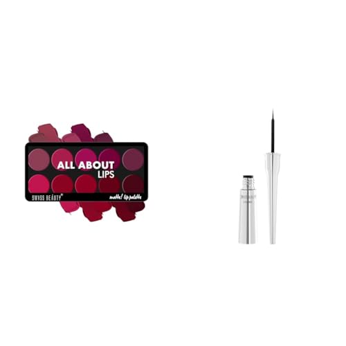 Swiss Beauty All About Lip Palette With 10 Pigmented Colors |Creamy Matte Finish Lip Colors Lipstick |Travel Friendly Lip Palette | Multicolor-02 12 Gm |The product comes in safe package. The product will be an excellent pick for you.Swiss Beauty Waterproof Liquid Black Eyeliner | Smudge Proof Transfer Proof Eye Liner for Eye Makeup |Black 4ml |Why you will love it experience the new generation of liquid eyeliner technology keeps pigments super saturated spring cap keeps the formula fresh. You can easily apply Swiss Beauty eyeliner to change your makeup look for different moods and occasions.