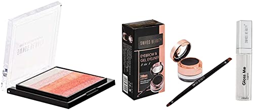 Swiss Beauty Brick Highlighter Palette Face Makeup Multicolor-02 7GCombining the warmth from a bronzer with highlighters to give gorgeous definition to all skin tones. Either use each shade from the shimmer brick on its own or swirl your brush round to pick up all the colours.Swiss Beauty Waterproof Eyebrow & Gel Eyeliner 2 In 1 with Brush | Smudge proof Gel Eyeliner and Eyebrow Definer Pencil | Shade- Black 7G |This eyebrow and gel eyeliner has a rich and creamy water resistant formula that glides on smooth without smearing or smudging for long lasting all day wear. It comes with a professional fine eyeliner brush that expertly defines eyes to create texture so it spreads evenly. A must-have for any beauty lover for a classic line. The formula goes on smooth with deeply saturated colour that lasts all day. Its quick drying and doesn't flake.Swiss Beauty Metallic Gloss Me Lip Gloss | LightweightNon Sticky and Hydrating Lip Gloss| White 6MlIf you want to know how these glosses feel on the lips the clue is in the name. But while its softer than butter its not sticky or gloopy in the bargain. The lightweight formula allows you to wear it alone or on top of a matte lipstick to make it feel less drying. Plus the colossal shade range will make any beauty addict feel like a kid in a cosmetic candy shop.