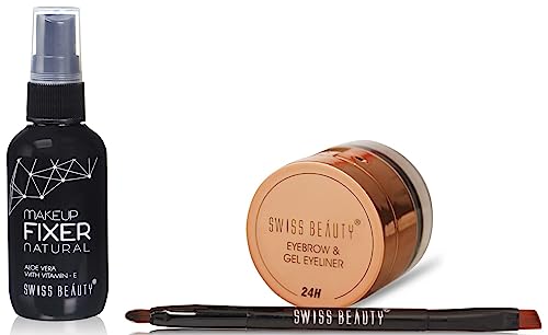 Swiss Beauty Waterproof Eyebrow & Gel Eyeliner 2 In 1 with Brush | Smudge proof Gel Eyeliner and Eyebrow Definer Pencil | Shade- Black 7G |This eyebrow and gel eyeliner has a rich and creamy water resistant formula that glides on smooth without smearing or smudging for long lasting all day wear. It comes with a professional fine eyeliner brush that expertly defines eyes to create texture so it spreads evenly. A must-have for any beauty lover for a classic line. The formula goes on smooth with deeply saturated colour that lasts all day. Its quick drying and doesn't flake.Swiss Beauty Long lasting Misty Finish Professional Makeup Fixer Spray for Face makeup | With Aloe Vera and Vitamin- E | Light weight quick dry makeup Setting spray |70 ML|Makeup fixer used either before or after makeup is to set your makeup so that it can stay longer and not be wiped off with touch of hands or run off with perspiration. Spray from a distance and let it dry before applying makeup or to set makeup or to set makeup spray after applying makeup.