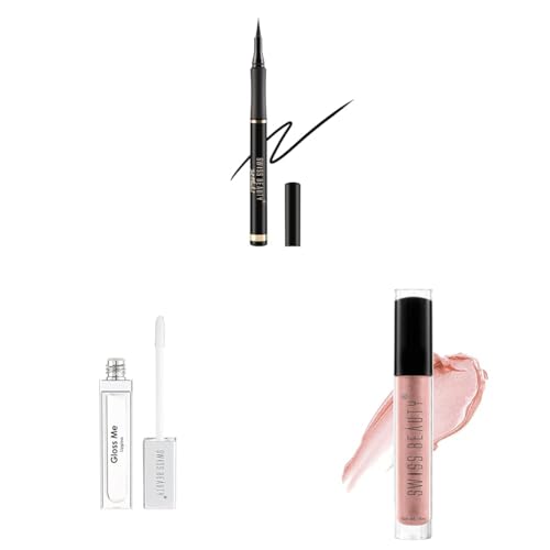 Swiss Beauty Waterproof And Long Wearing Bold Felt Tip Pen Eyeliner | Smudge Proof Eye Makeup | Quick Drying |Black 1.2 Ml |Be bold with your eyeliner. For bold lines in one stroke look no further than Swiss beauty jet black bold felt tip eyeliner. - The felt-tip makes application easy and the no-smear no-smudge formula ensures a lasting look that you'll love. - The non-feathering water-resistant formula comes in the richest deepest black available. - Use this liner for a long-wearing intense eye look that's professionally precise.Swiss Beauty Gloss Me Lip Gloss | Lightweight | Glossy Finish | Non-sticky |With Jojoba Oil & Glycerine | 8gmIf you want to know how these glosses feel on the lips the clue is in the name. But while its softer than butter its not sticky or gloopy in the bargain. The lightweight formula allows you to wear it alone or on top of a matte lipstick to make it feel less drying. Plus the colossal shade range will make any beauty addict feel like a kid in a cosmetic candy shop.Swiss Beauty Shine & Plump | Non - Sticky and Hydrating Lip Gloss - 03 4mlThe new Lip Shine & Plump Lip Gloss is a perfect choice and a must-have for smooth hydrated lips. It makes your lips seem fuller and its multidimensional shine makes it every makeup artists favorite.