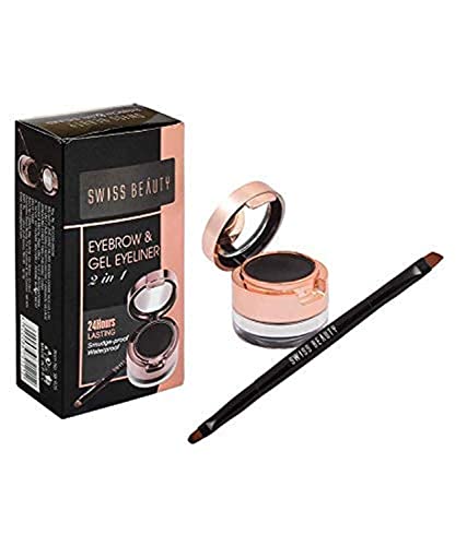 Swiss Beauty Waterproof Eyebrow & Gel Eyeliner 2 In 1 with Brush Semi-Matte Finish Smudge proof Gel Eyeliner and Eyebrow Definer Pencil Shade- Black 7gThis eyebrow and gel eyeliner has a rich and creamy water resistant formula that glides on smooth without smearing or smudging for long lasting all day wear. It comes with a professional fine eyeliner brush that expertly defines eyes to create texture so it spreads evenly. A must-have for any beauty lover for a classic line. The formula goes on smooth with deeply saturated colour that lasts all day. Its quick drying and doesn't flake.Swiss Beauty Real MakeUp Base Hightlighting Primer| Skin-hydrating Poreless Primer with Natural Glow finish for Face makeup |Shade - Golden-Tint 32mlThe Swiss Beauty brighten the skin contains perl powder. It brightens skin and make the base fit and natural shines and enchanting lustre as well. Let your skin soft and moisturizing with this highlighting primer. Use it alone and bright your skin. Mixed with highlighting primer with base products such as foundation or BB cream with a scale of 1: 1. After press on palm apply them on the face to finish the base. After finishing the base apply the product on the area where need to be highlighted make the skin more glossy.