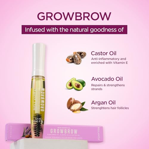 Bella Vita Organic Growbrow - Eyelash, Lashes & Eyebrows Hair Growth & Volume Serum With Castor, Onion Oil & Vitamin E, 12 ML