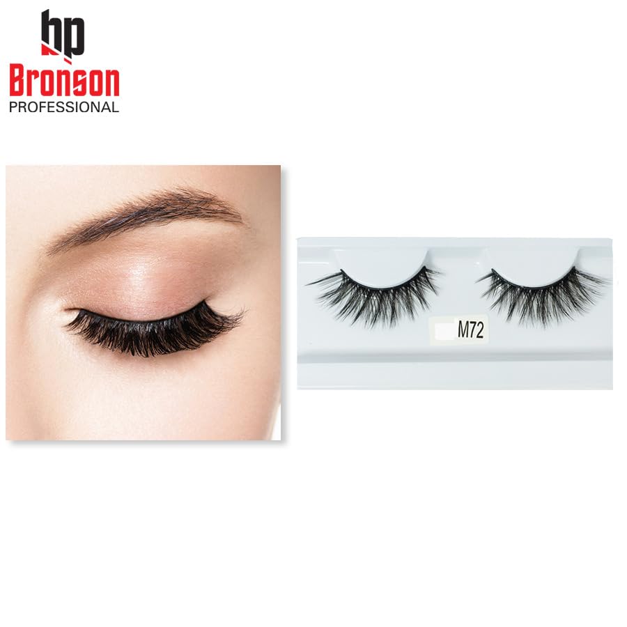 BRONSON PROFESSIONAL | False Eyelash, Eye Makeup Lash 3D Faux Mink Fake Eyelash Long Natural Eyelashes no. M72 (1 pair)